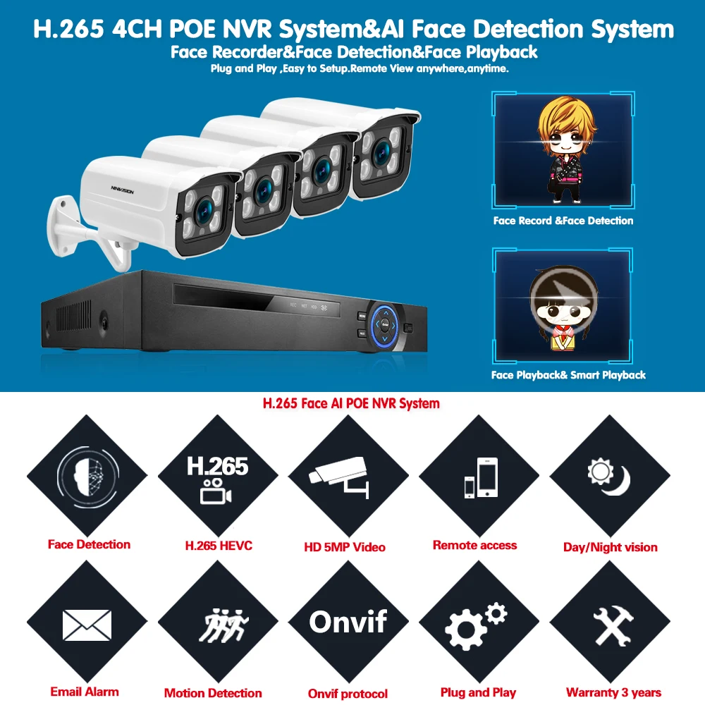 H 265 NVR FeaturesMotion detection/Face Detection/email Alert/onvif etc..