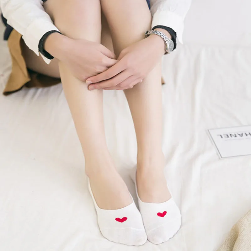 Носки женские Короткие хлопковые нескользящие, невидимые мягкие носки-невидимки с сердечками, тапочки для дома, 1 пара, весна-лето