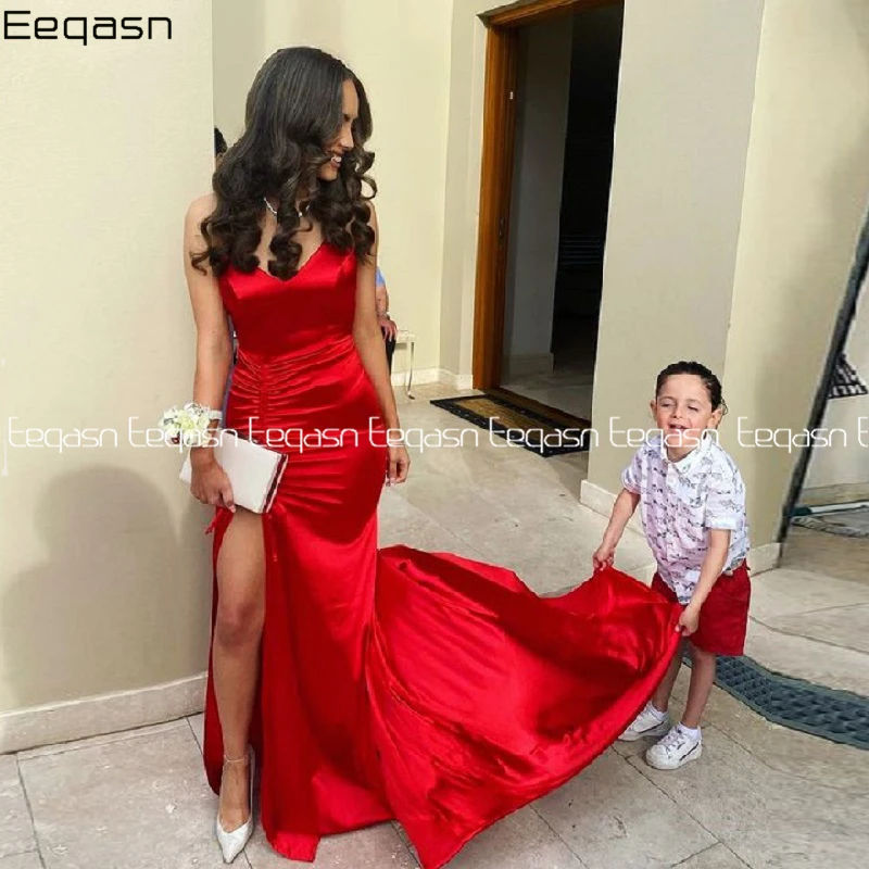 Женское вечернее платье с юбкой годе, Очаровательное длинное платье на тонких бретельках с высоким разрезом и шлейфом, сексуальное пышное платье для выпускного вечера