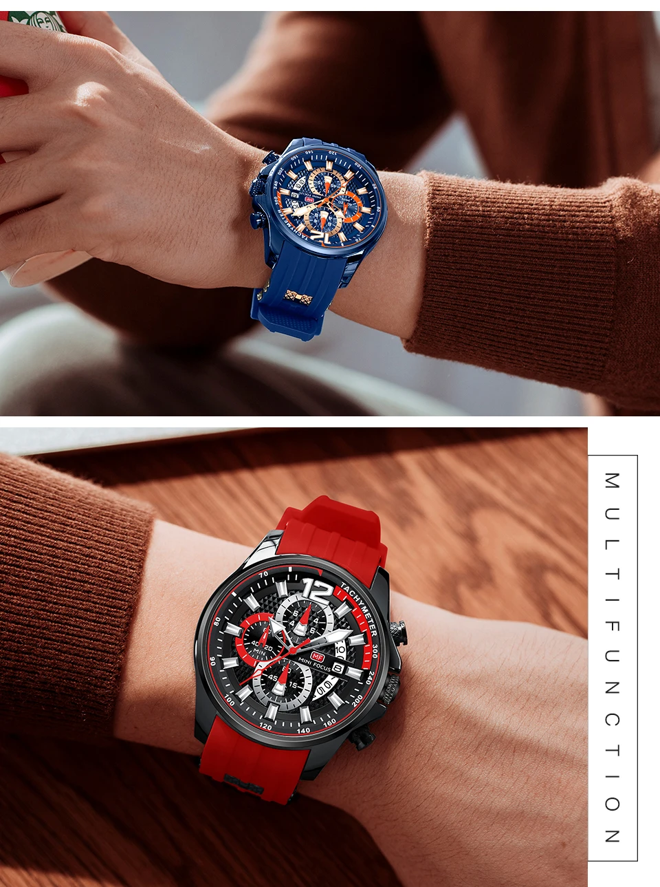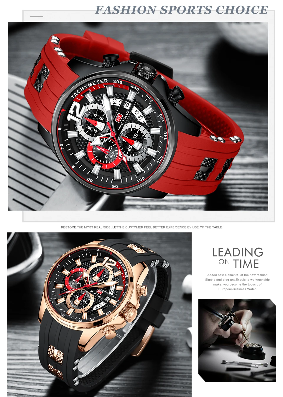 Часы наручные MINI FOCUS Мужские кварцевые, модные брендовые Роскошные водонепроницаемые спортивные с красным силиконовым ремешком