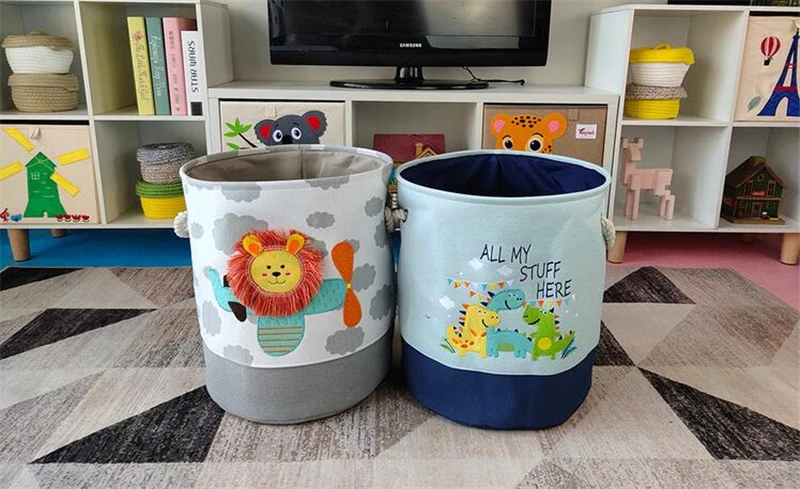 Детское хранилище для игрушек холщовая корзина с милым мультяшным л...