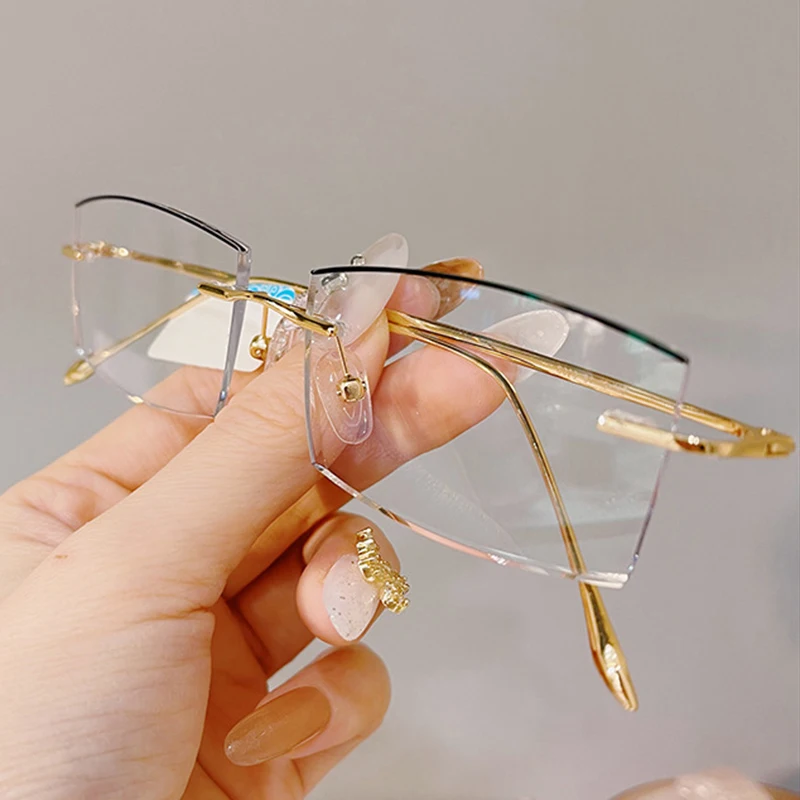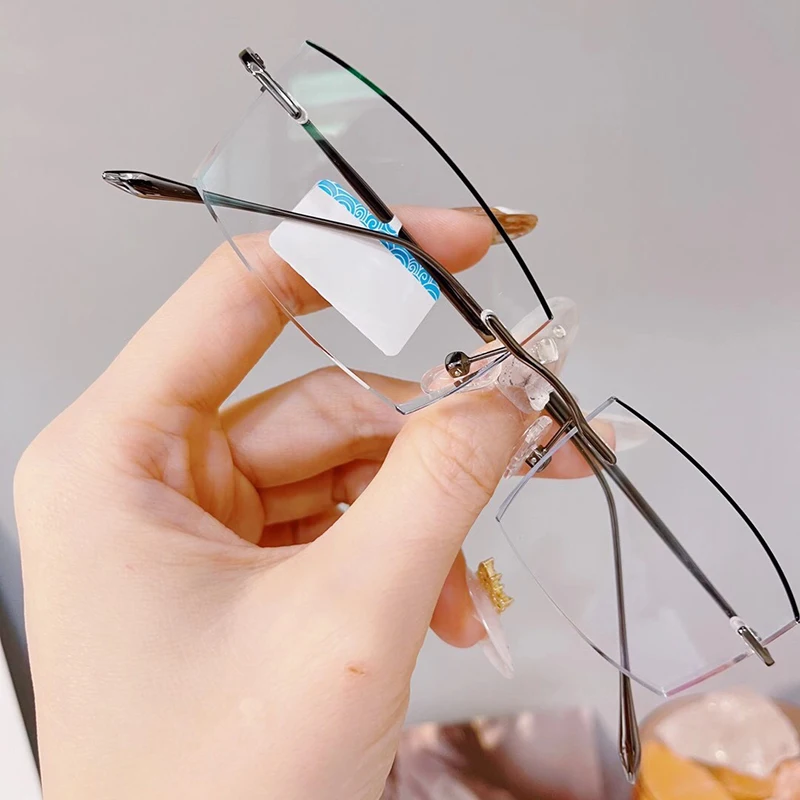 Новые модные очки для чтения, Женские оправы без оправы с бриллиант...