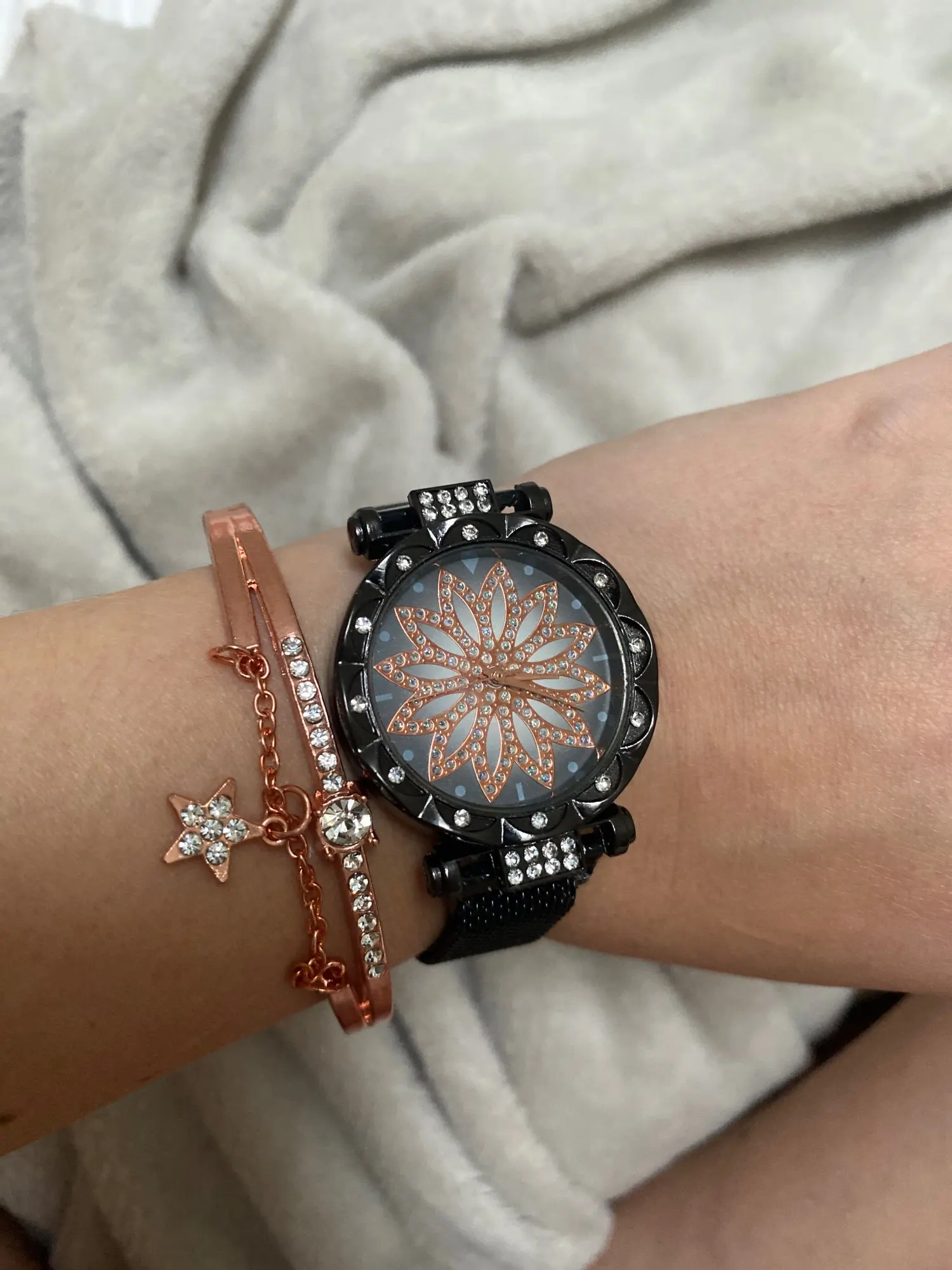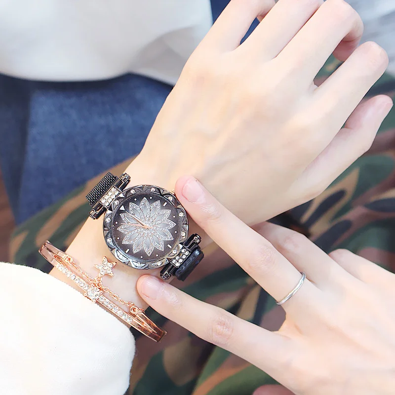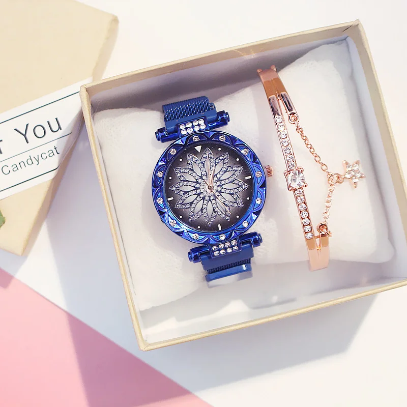Женские кварцевые часы с магнитной пряжкой на удачу, роскошные женские Стразы с браслетом