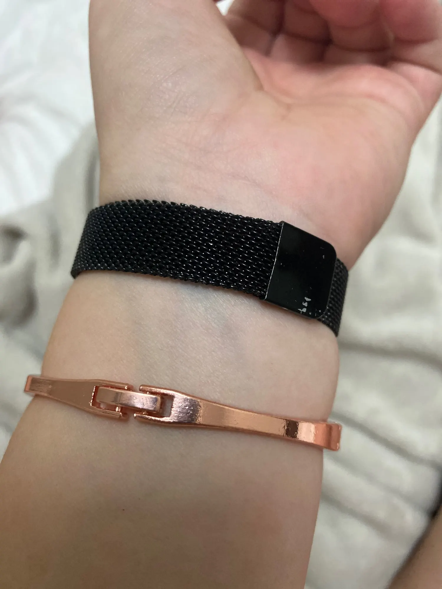 Очень хорошие часы, как браслет, часы хорошего размера выглядят очень красиво, браслет, как я могу сказать прямо, я имею в виду, что вы не можете увеличить или растянуть для людей, у которых толще запястье, они не подойдут, но кроме этого они красивы и прибыли очень быстро...
