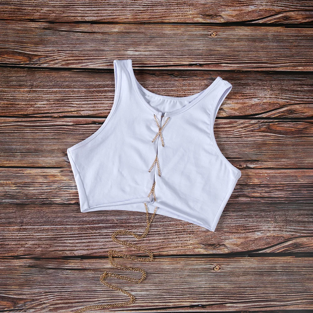 Женский сексуальный укороченный топ без рукавов с металлической цеп...
