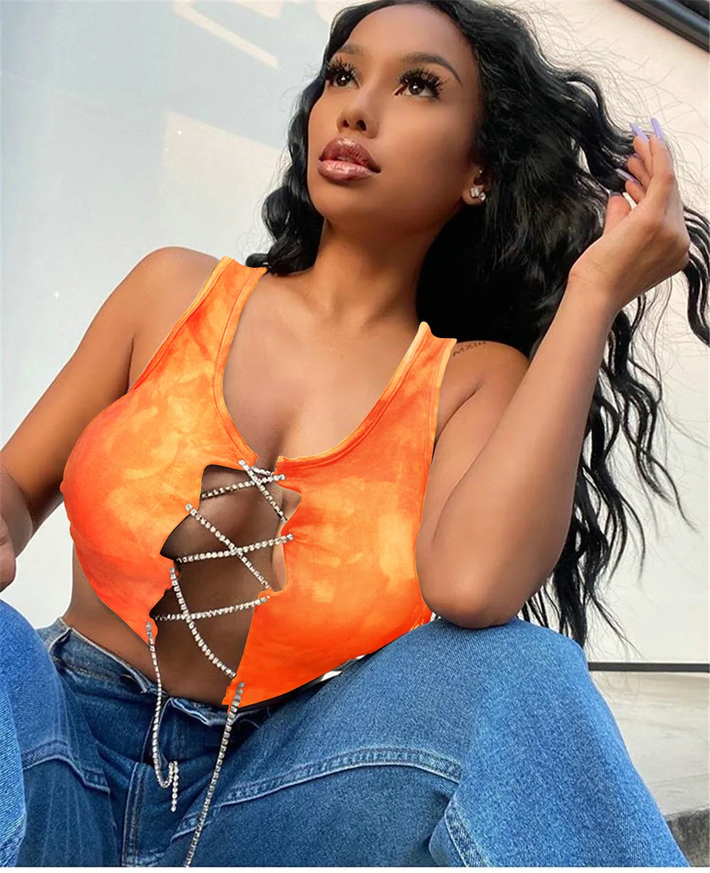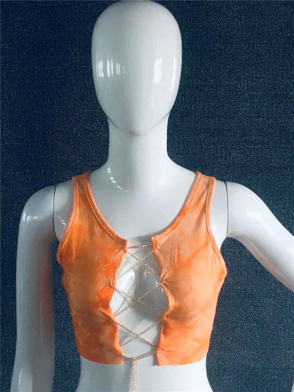 Сексуальный бандажный топ с металлической цепочкой, открытые топы д...