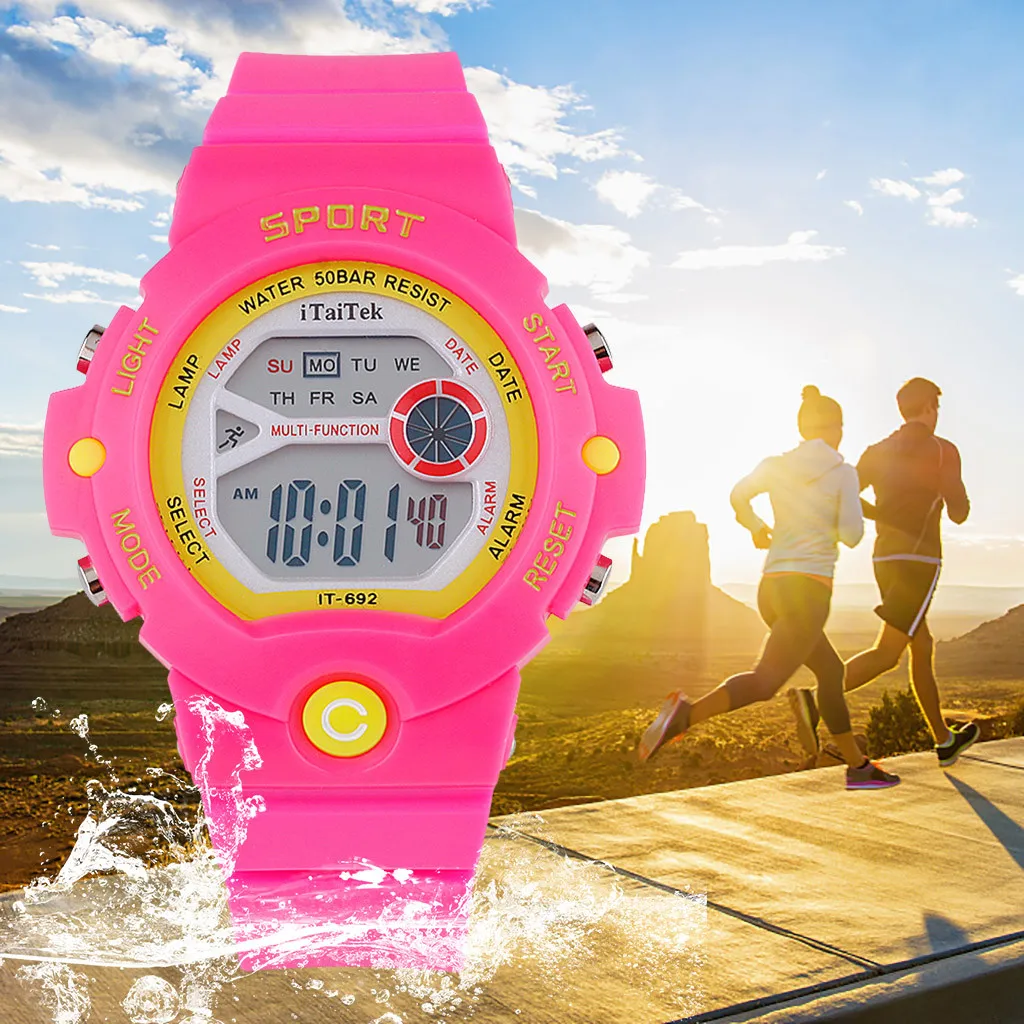 Часы цифровые светодиодные с будильником, светящиеся детские часы, водонепроницаемость 50 м, с пластиковым ремешком, студенческий подарок, Прямая поставка