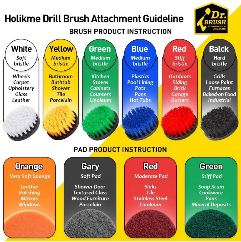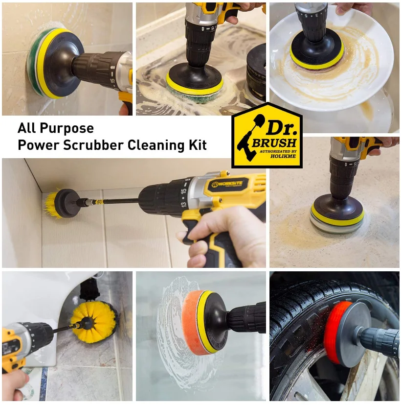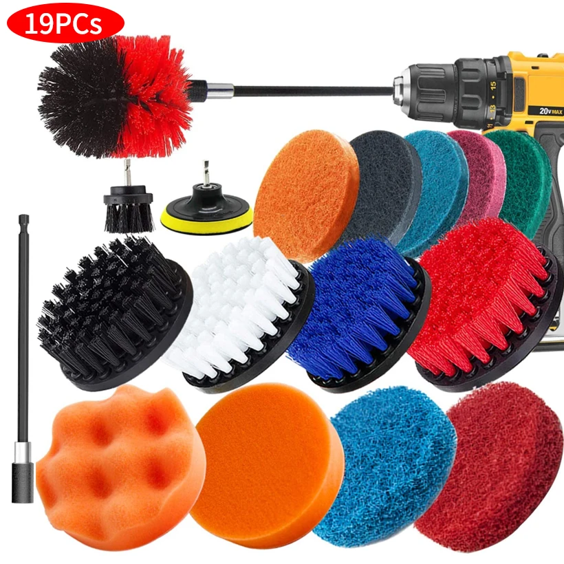 Набор щеток для электродрели, накладки для скраба и губка, Набор ще...