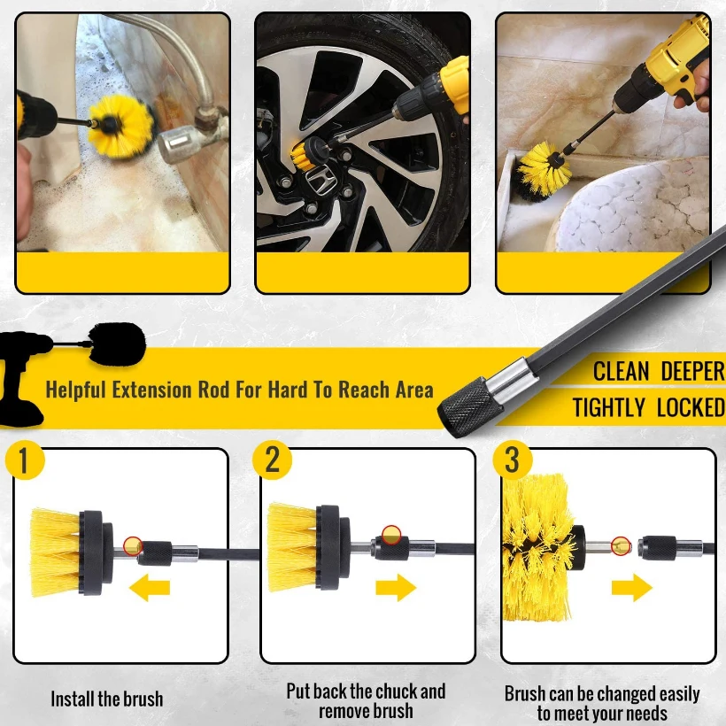 Набор насадок для дрели, мощная щетка для чистки, полировки, с удли...
