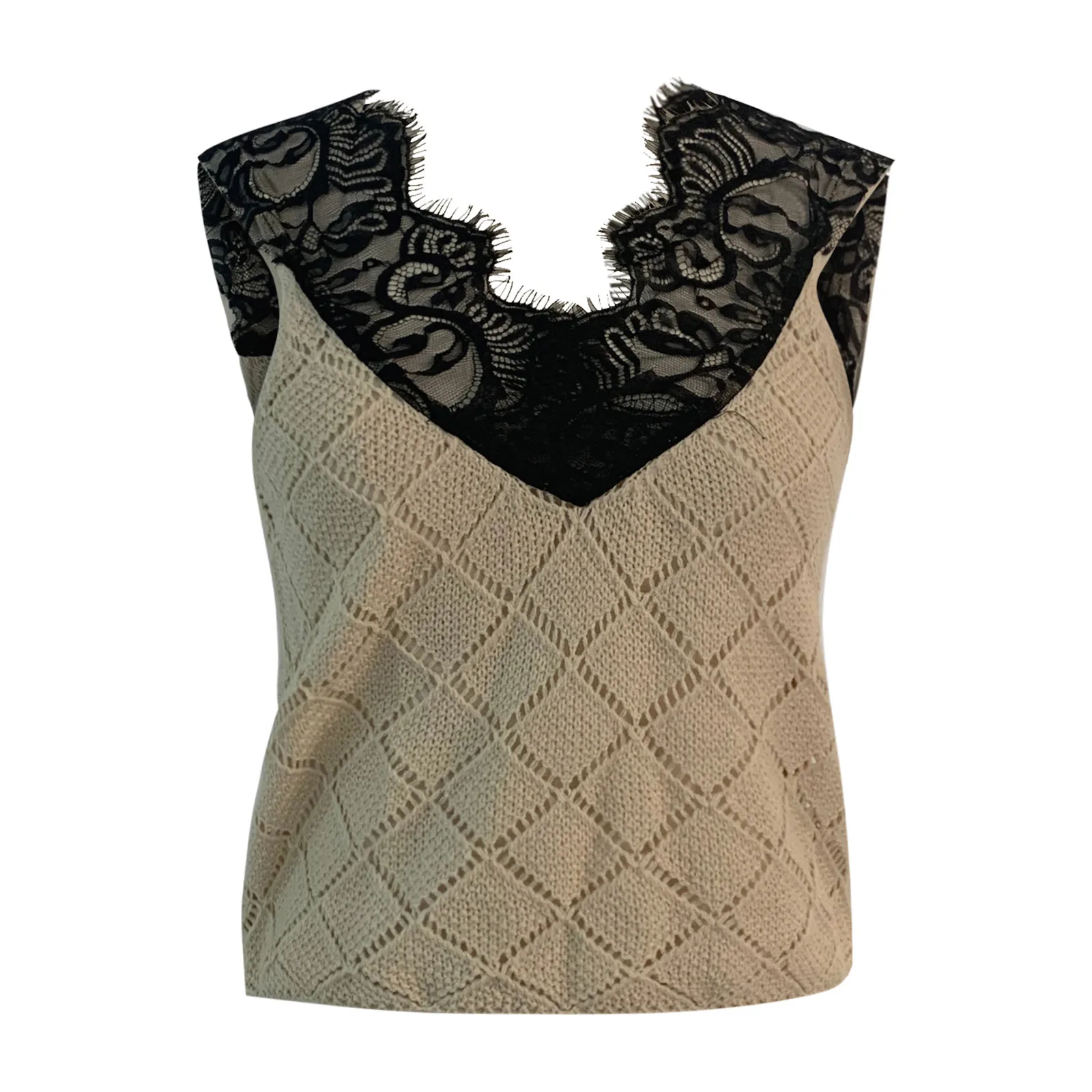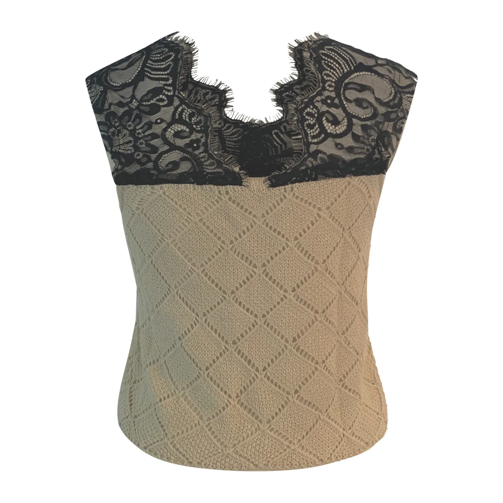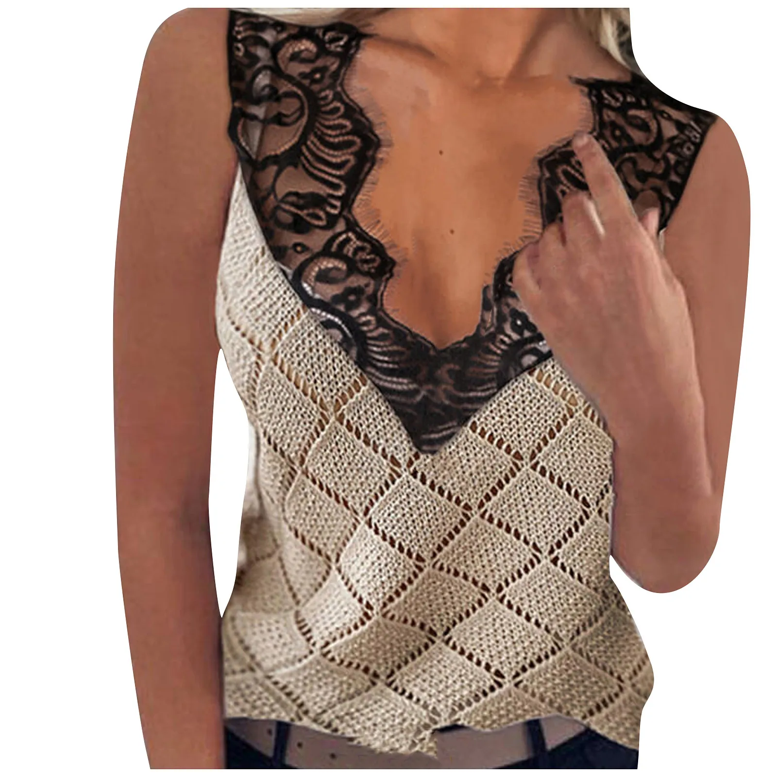 Пикантные женские Майки 40 #, кружевные, вязаные, шерстяные топы с глубоким V-образным вырезом, Платья Casual Tanks, комбинированные, ажурные, женские топы, топик женский топ