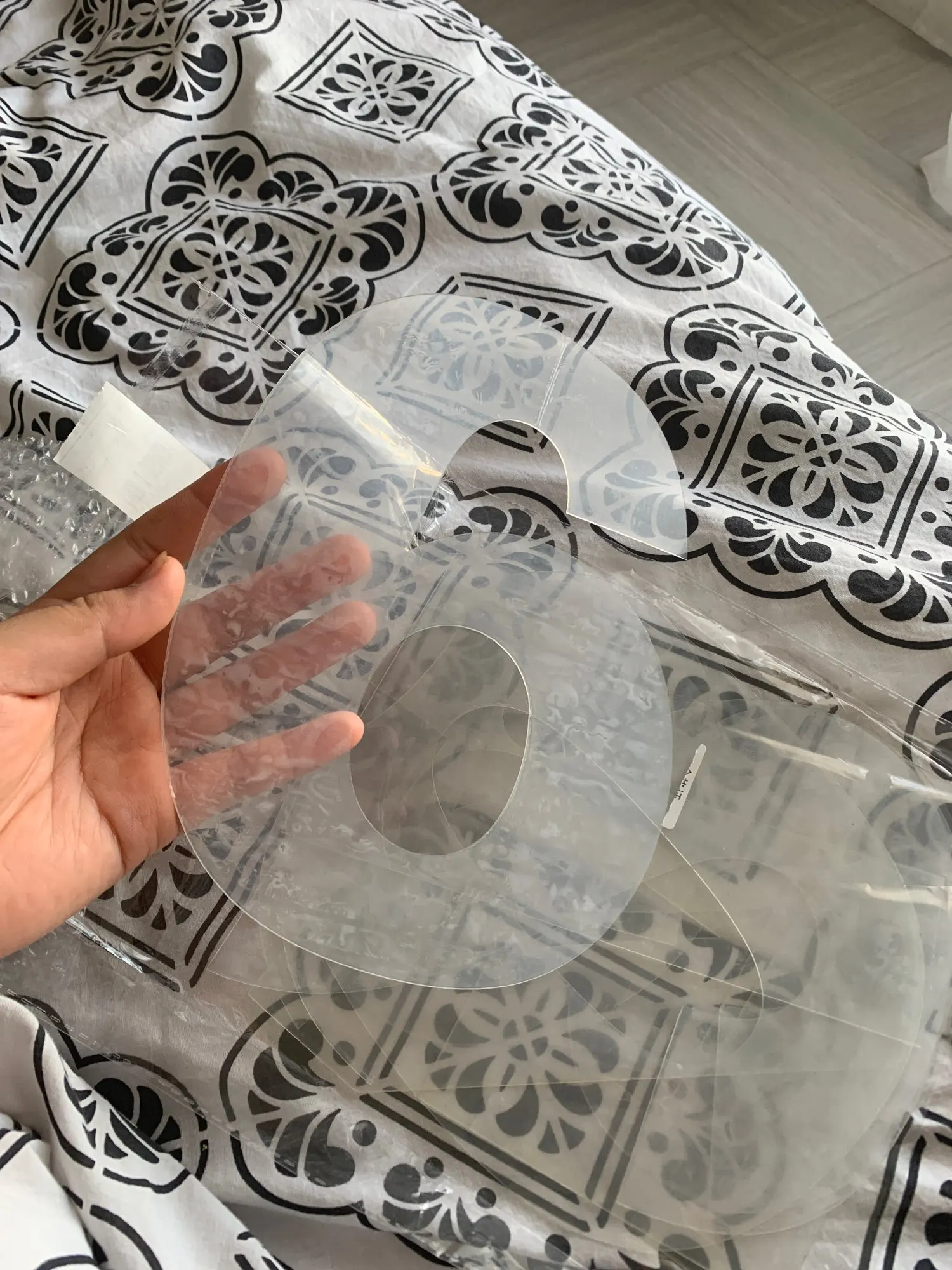 Качество пластика отвратительно. Пришли пыльными, сильно грязными. Безусловно перед тем как использовать будем мыть, но почему приходят запачканными грязью?! Кроя цифр в заусенцах о которые можно поцарапаться. Цифра 1 уродливая невероятно. То что показано на 1-й странице описания данного товара не соответсвует действительности. Единственное что соответствует - это размер. Доставка до Москвы 1 месяц.