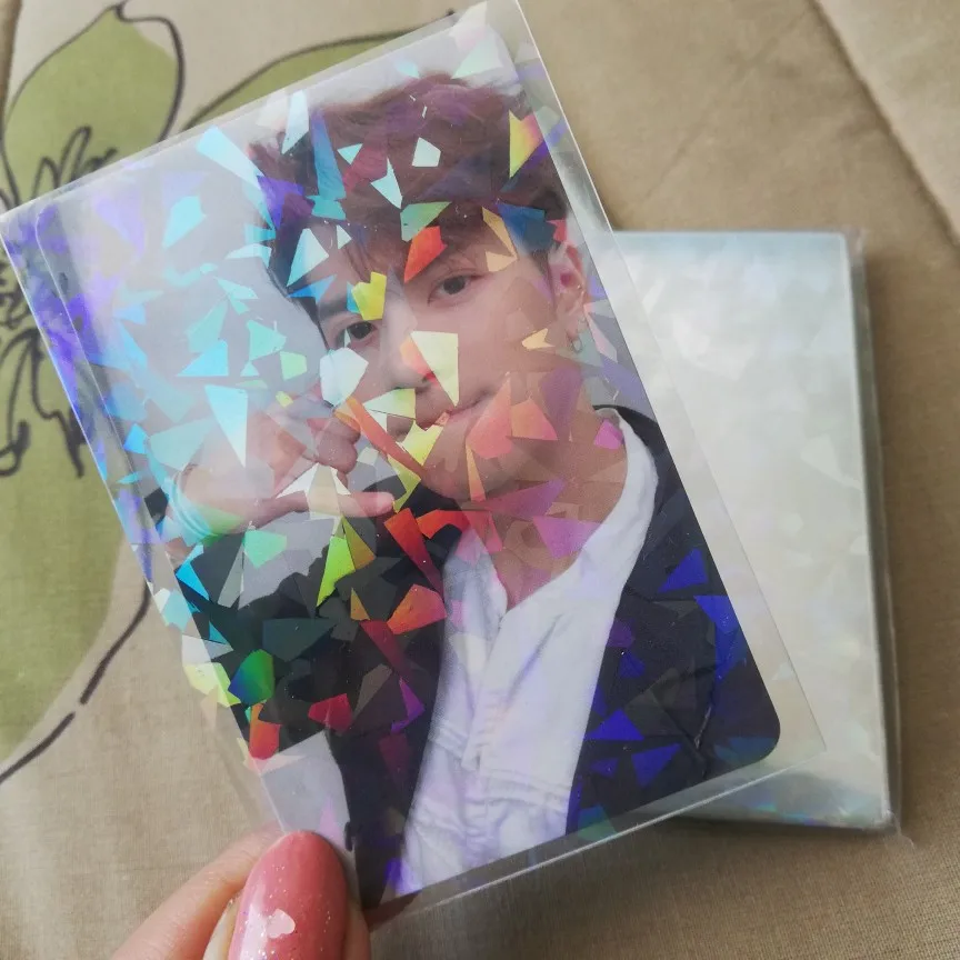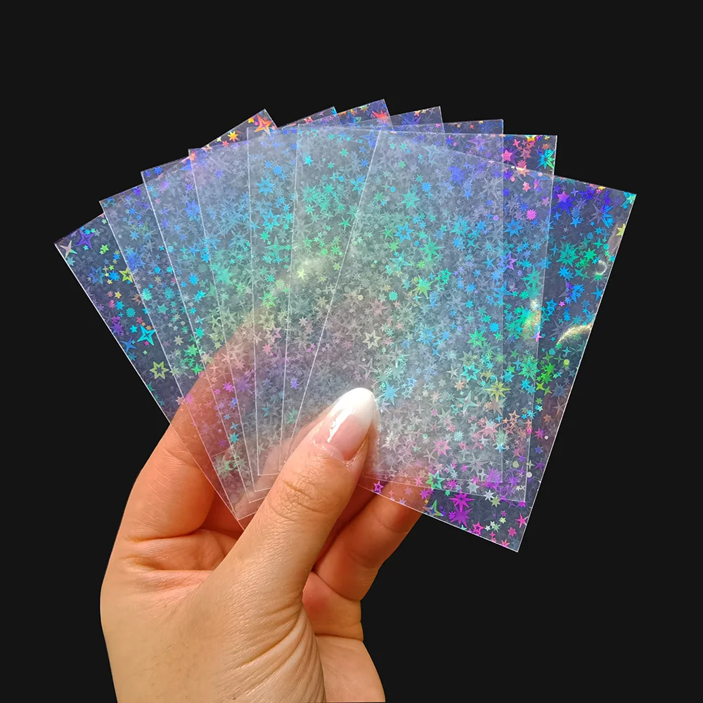 100PC Gemstone Laser Flash Holographic Idol KPOP Photo Card Sleeve Cover Cute Shinny Sparkly TCG Card Foil Protective Film MAGIC