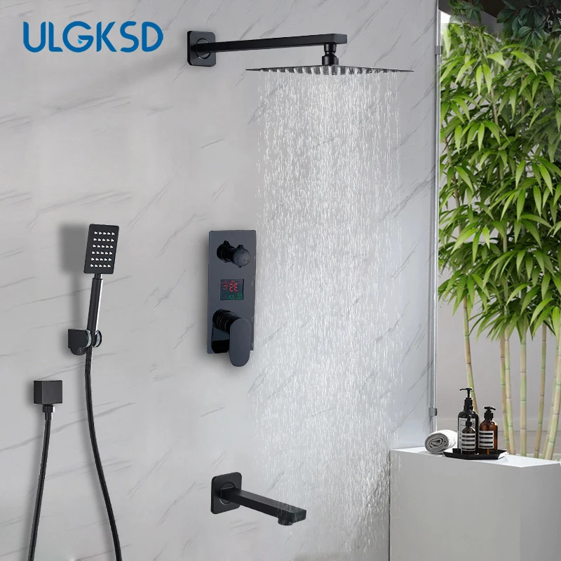 Набор скрытых смесителей для душа, матовый черный, с цифровым дисплеем