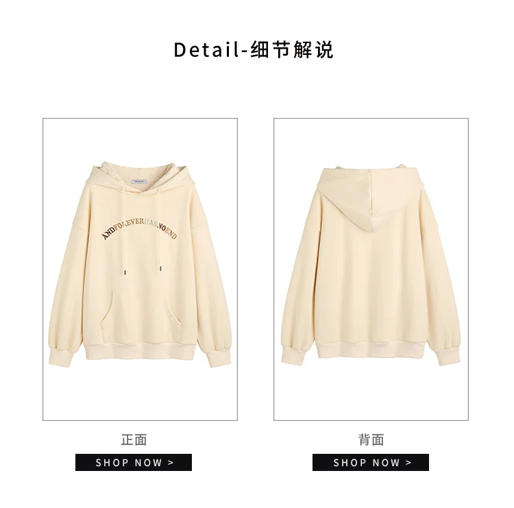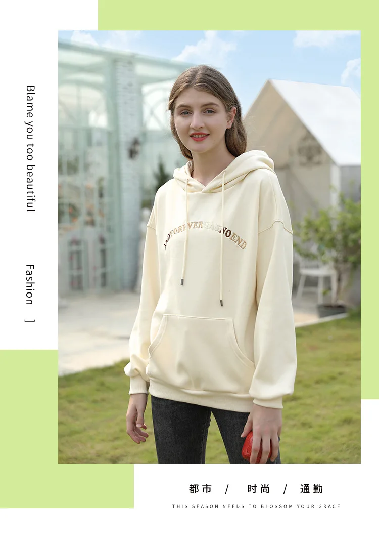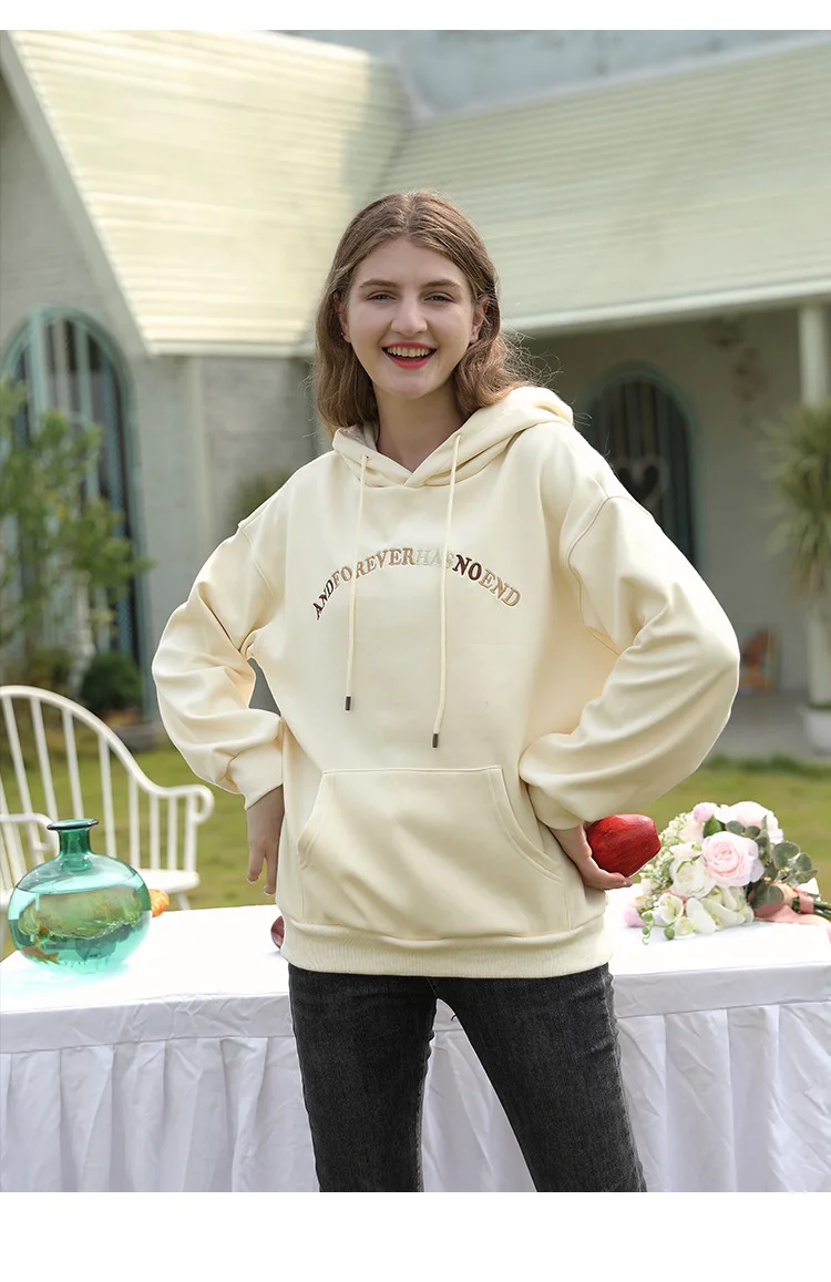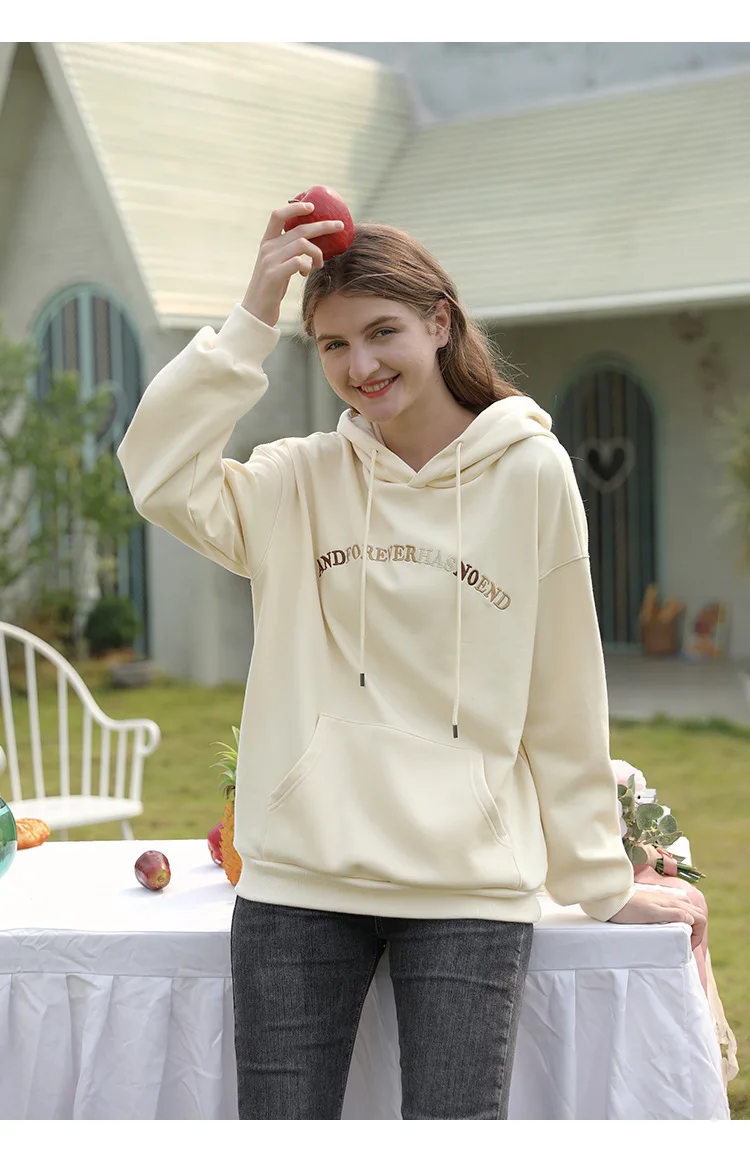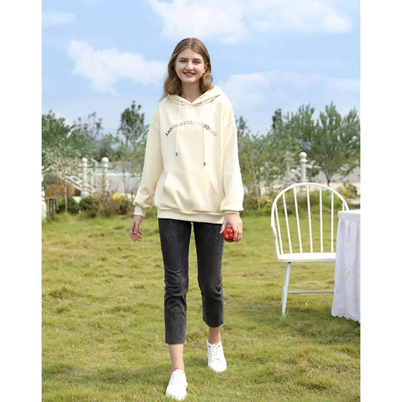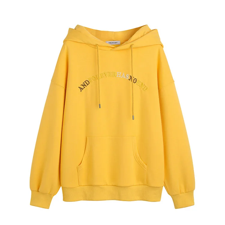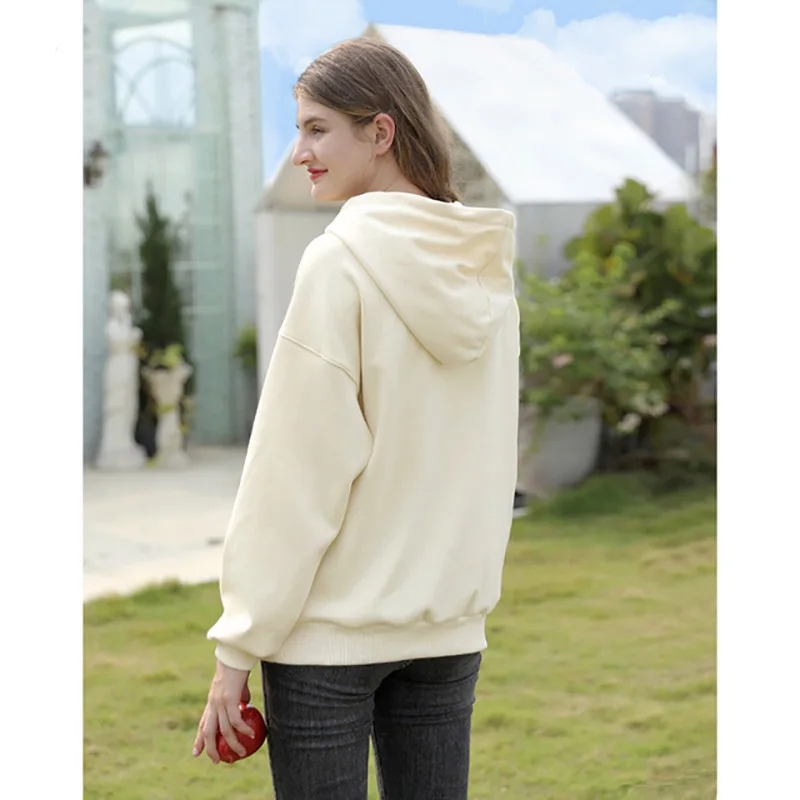 Женская толстовка с капюшоном, Весенняя однотонная хлопковая толстовка большого размера с буквенным принтом