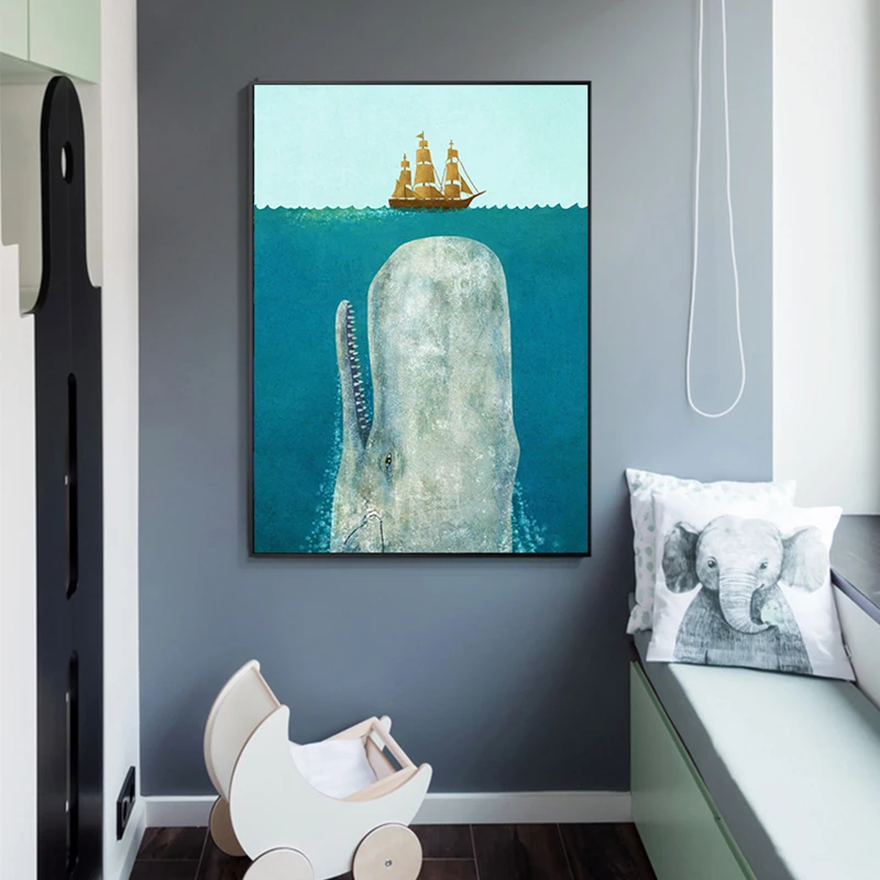 Акула, Кит, алфавит, морская жизнь, настенная живопись, холст, плак...