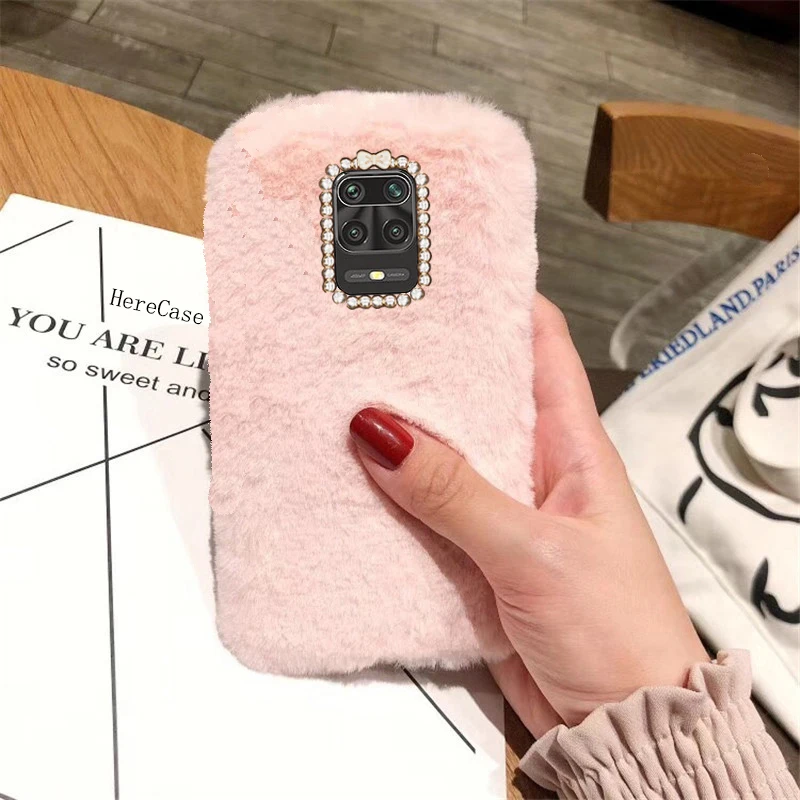 Чехол HereCase со стразами для Xiaomi POCO X3 NFC F2 Pro, плюшевый чехол из кроличьего меха, сохраняющий тепло, силиконовая задняя крышка для Redmi Note 9 Pro 9S 8 8T 7 6 5 4X