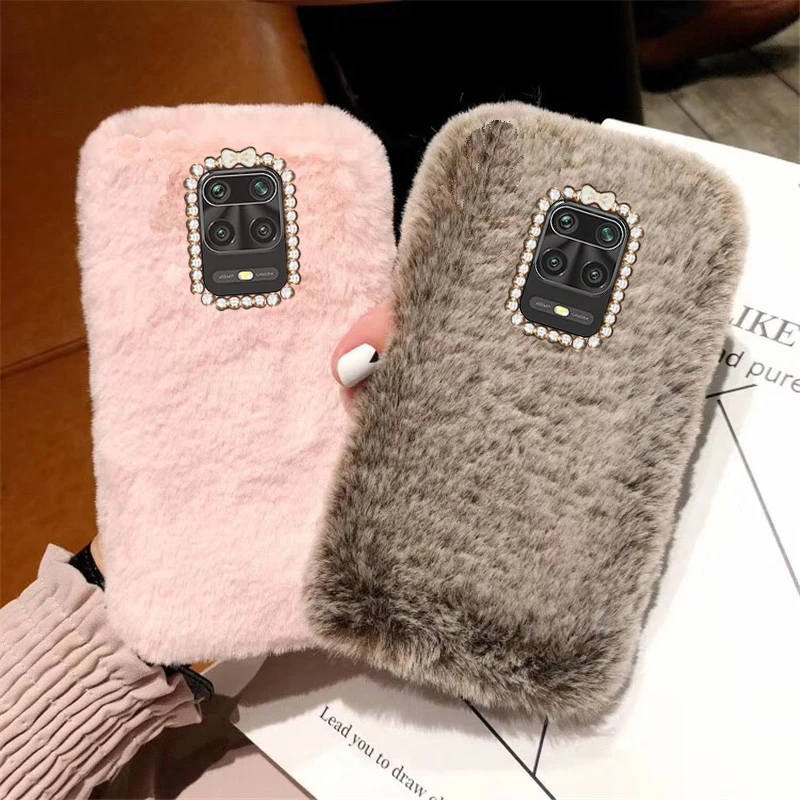 Чехол со стразами для Xiaomi POCO X3 NFC F2 Pro, мягкий, с кроличьим мехом, теплый, силиконовый, для Redmi Note 9 Pro, 9S, 8, 8T, 7, 6, 5, 4X