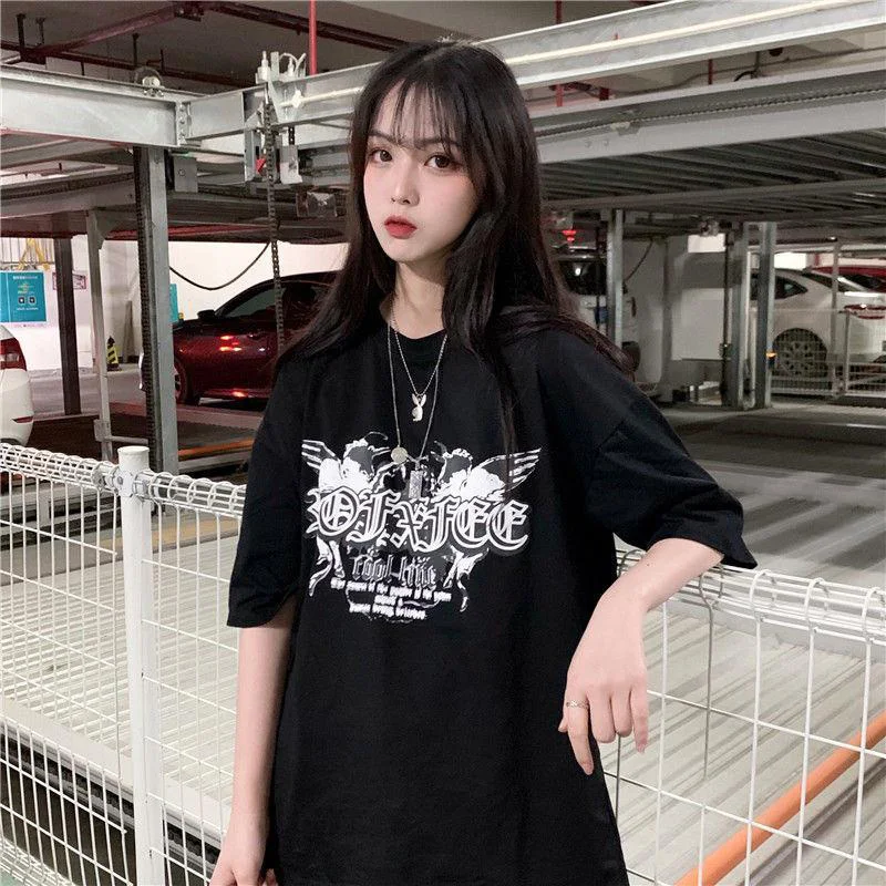 Футболка женская с принтом Диабло, Свободный Топ в стиле Харадзюку, с коротким рукавом, с милым аниме графическим принтом abstinence, y2k, 2019