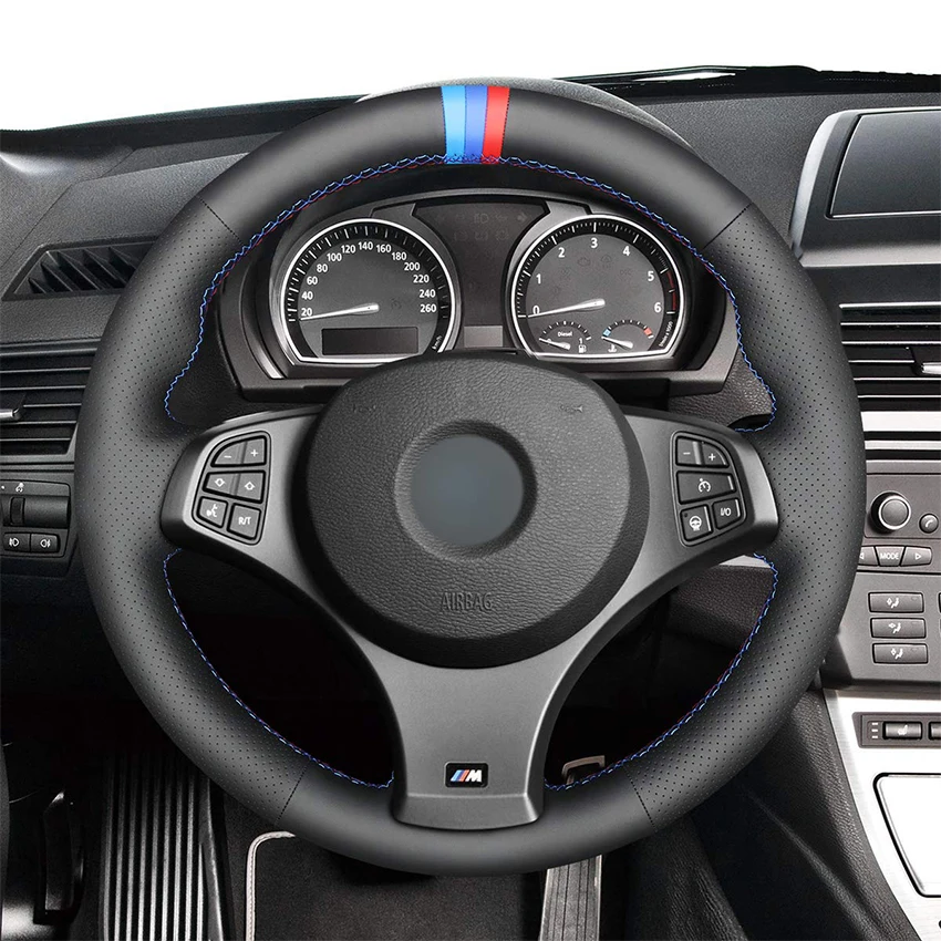 Сшитая вручную черная замша чехол рулевого колеса автомобиля для BM...