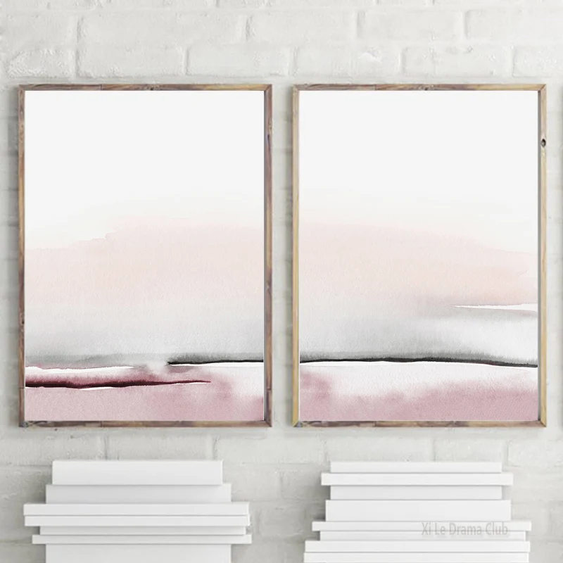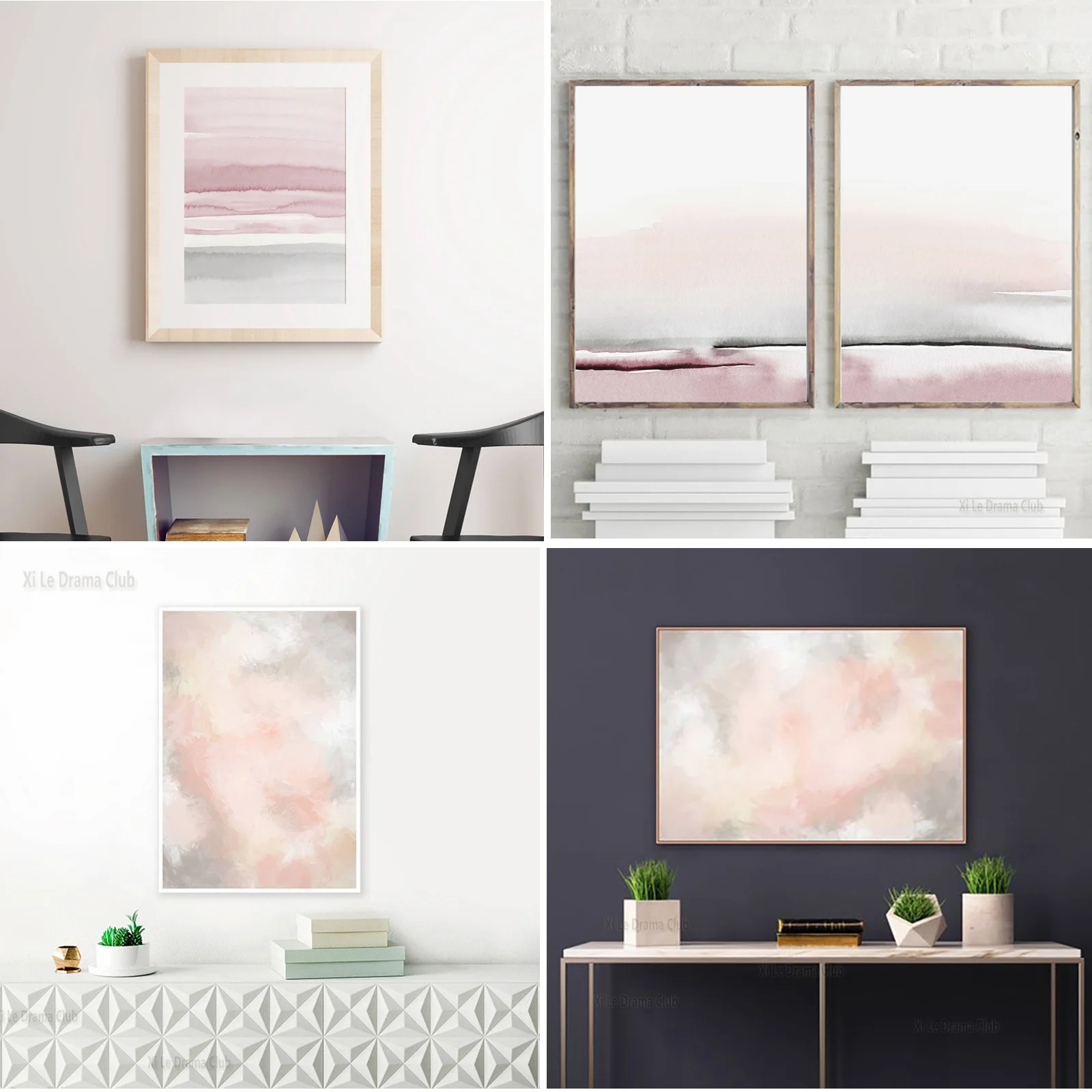 Скандинавский стиль румяна розовый и серый с принтом розовая Абстрактная Картина на холсте эстетический постер негабаритные настенные художественные украшения Pa