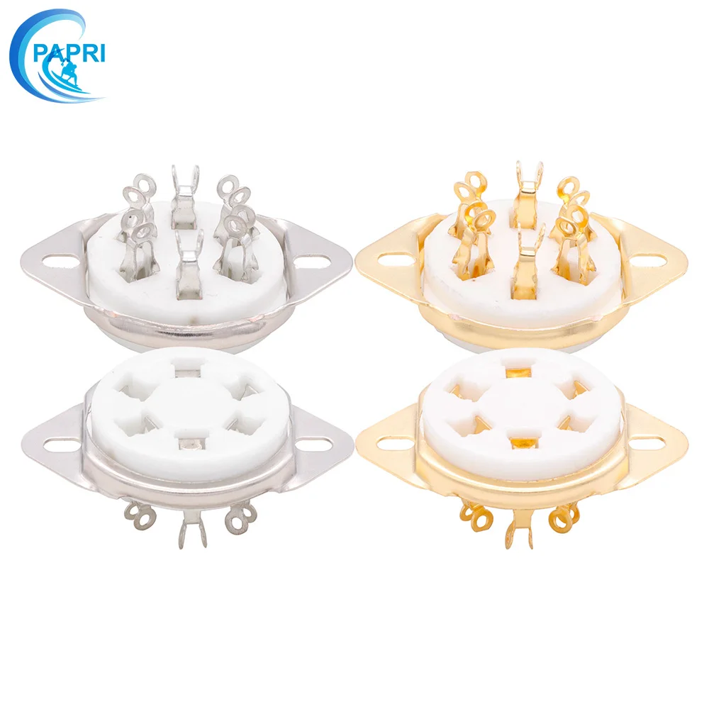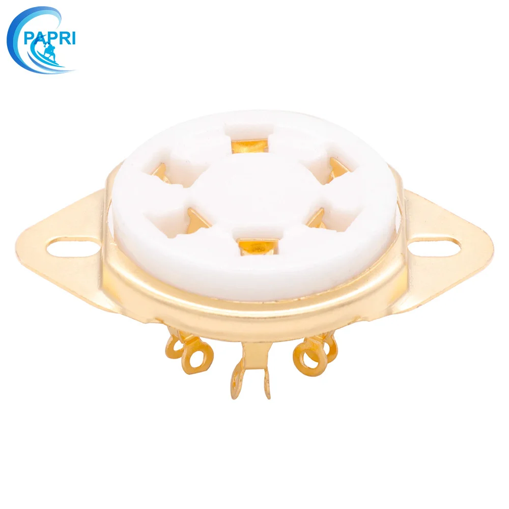 PAPRI 10 шт. керамическая U6A 6-контактная трубчатая розетка позолоченная булавка шасси для аудио DIY усилитель 2A5 6C6 6D6 KR43 KR49 VT57 VT58