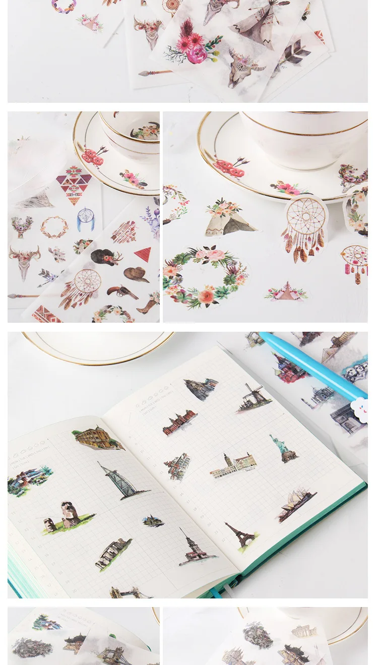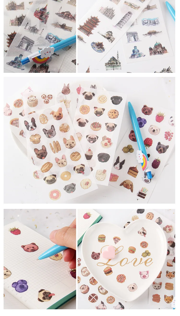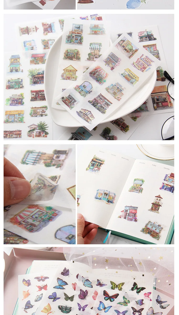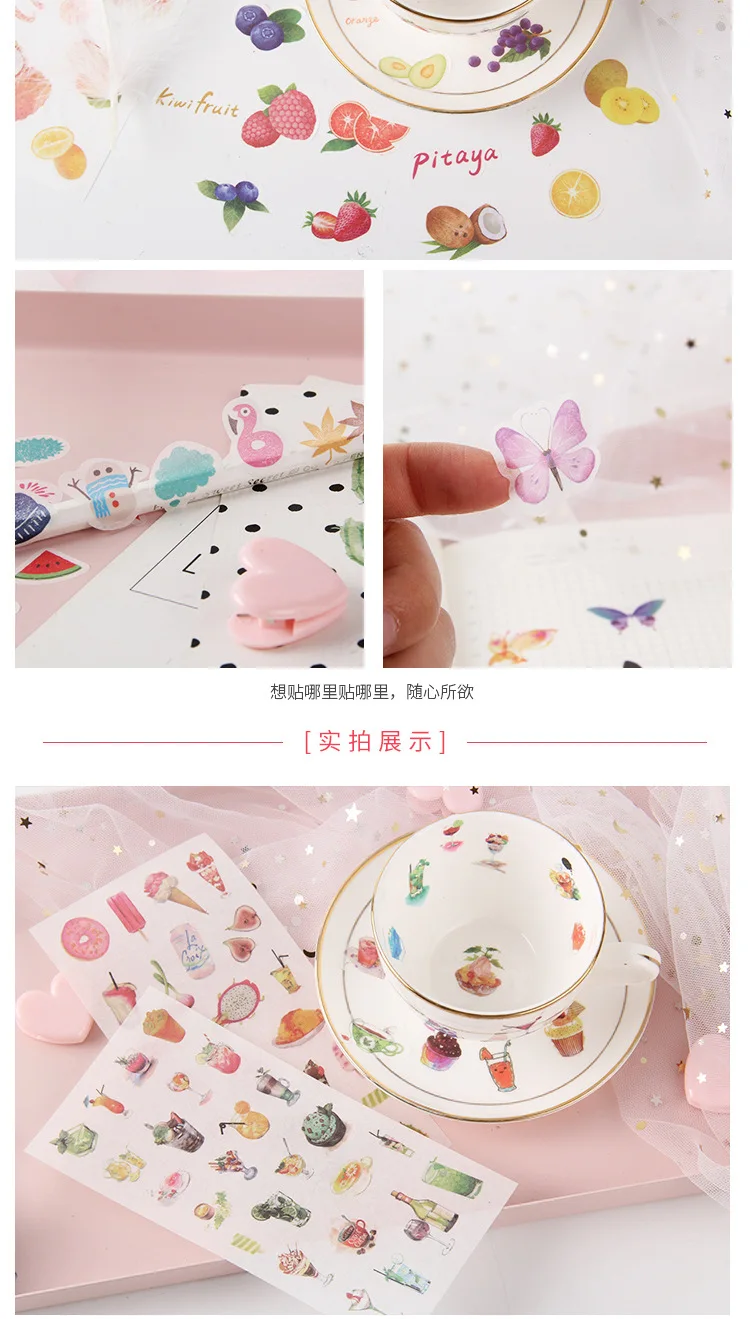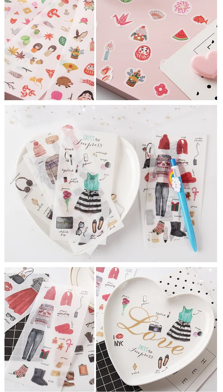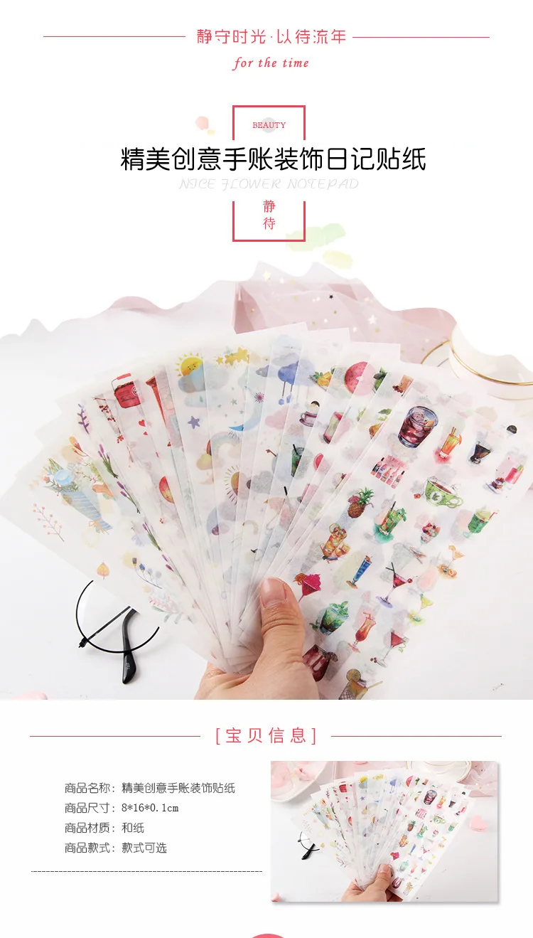 наклейки потрясающие! полупрозрачные, хорошо держатся на бумаге, рисунки яркие и четкие. всем советую!