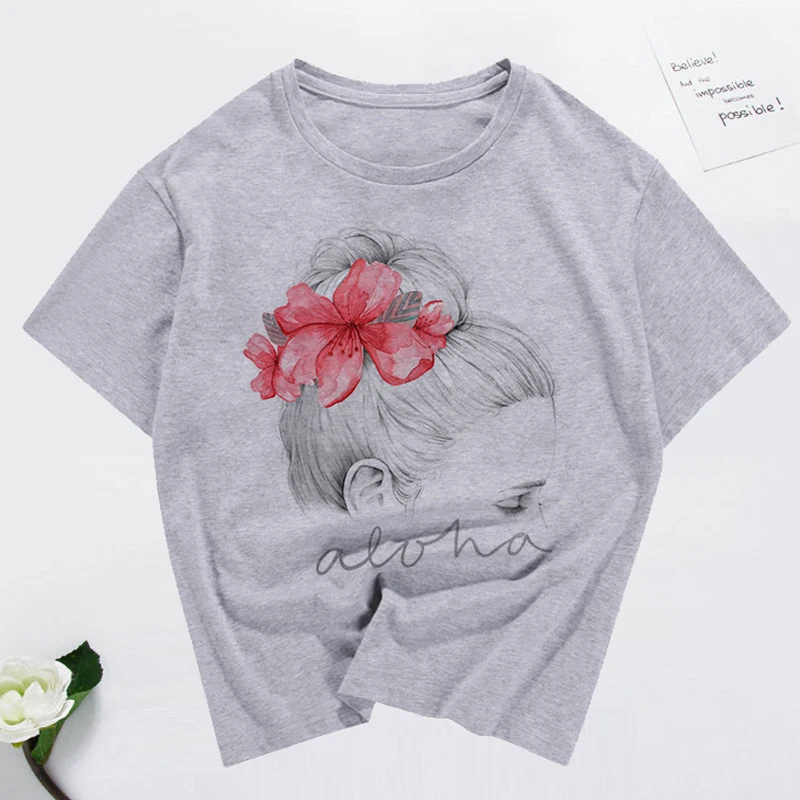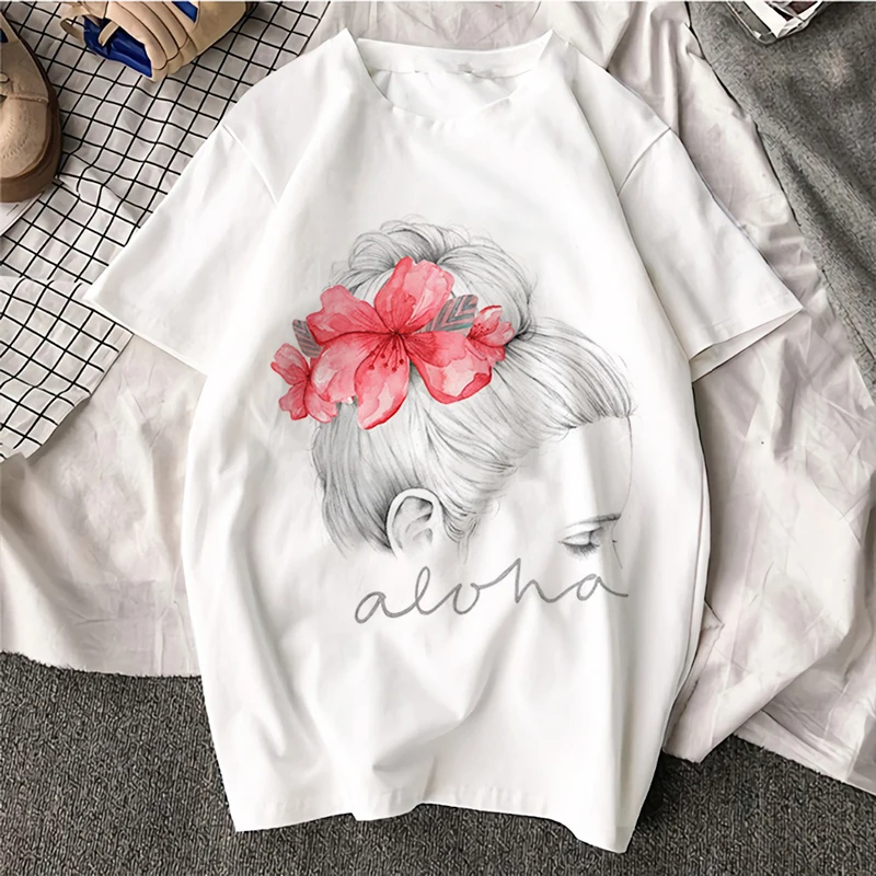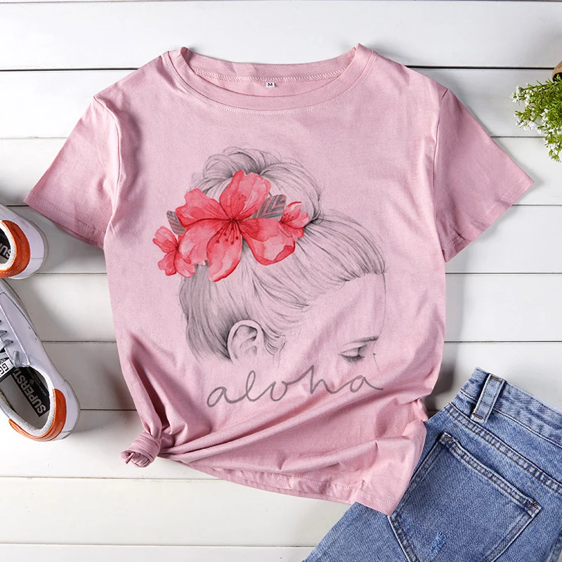 Женская летняя футболка с коротким рукавом, с цветочным принтом
