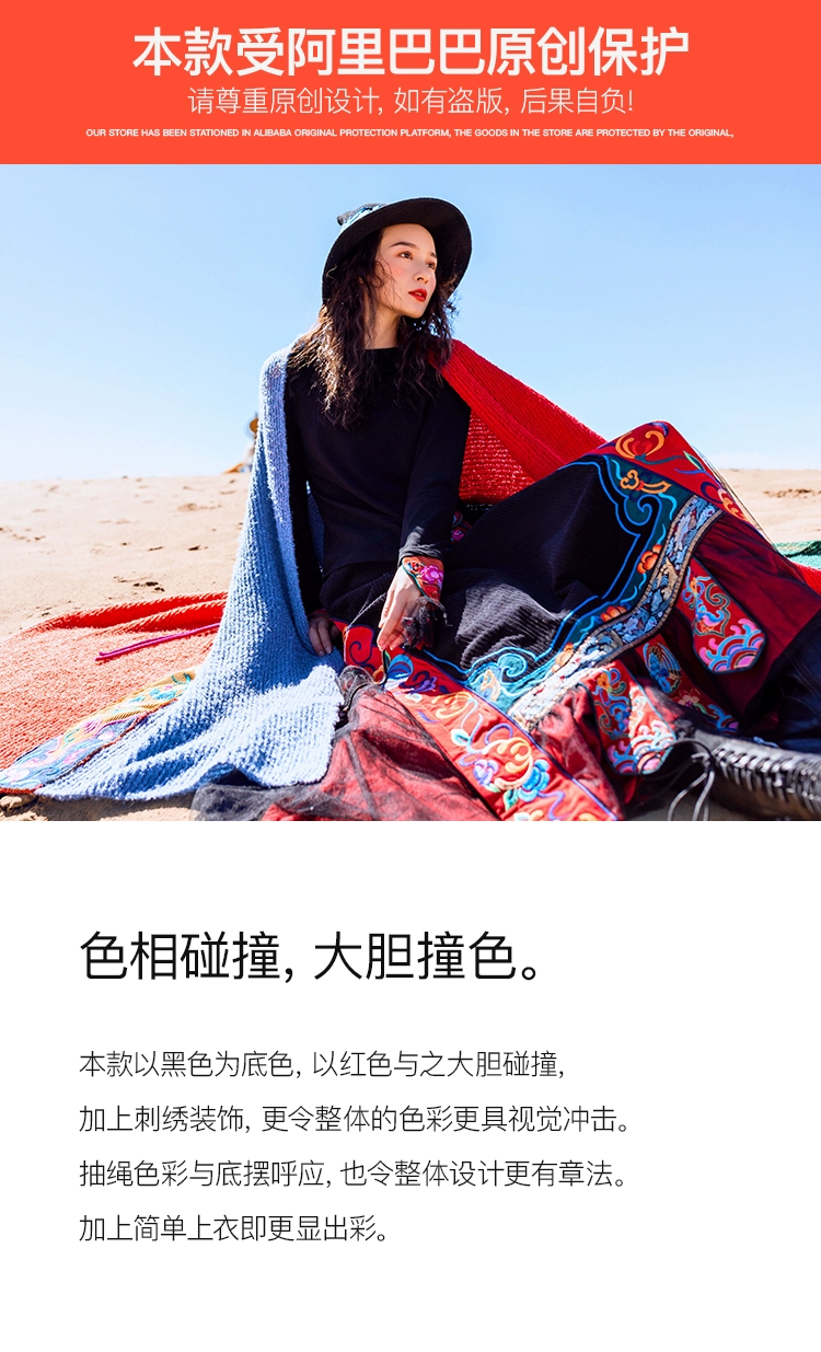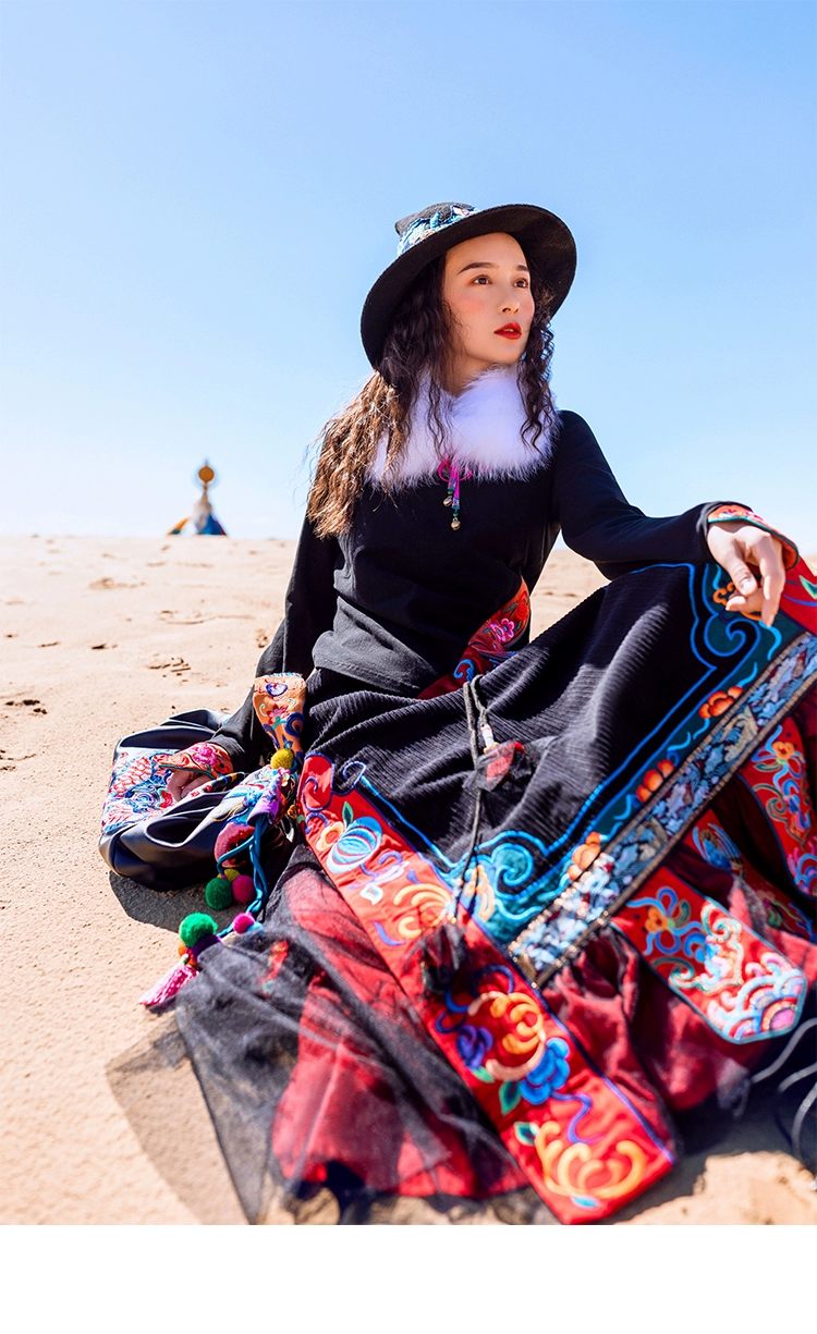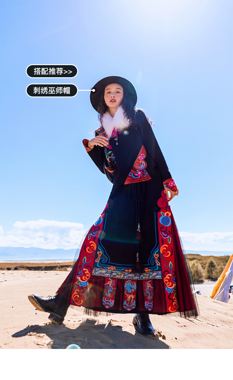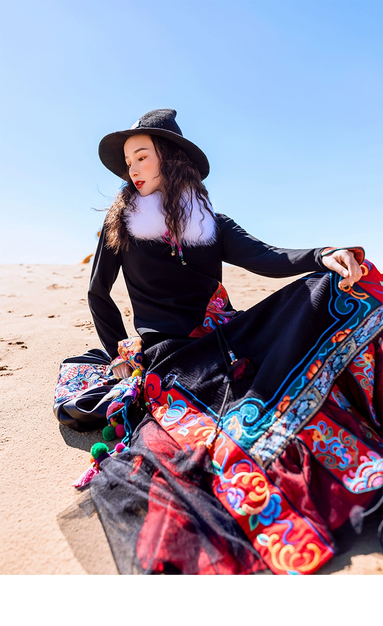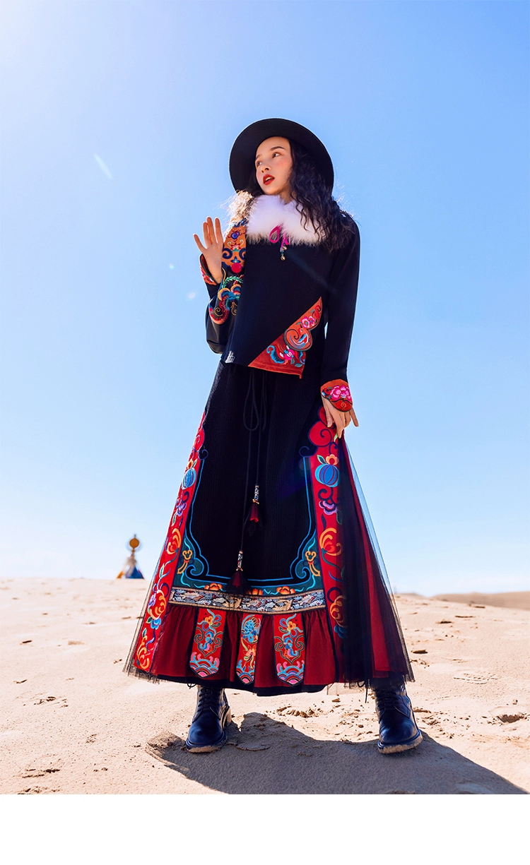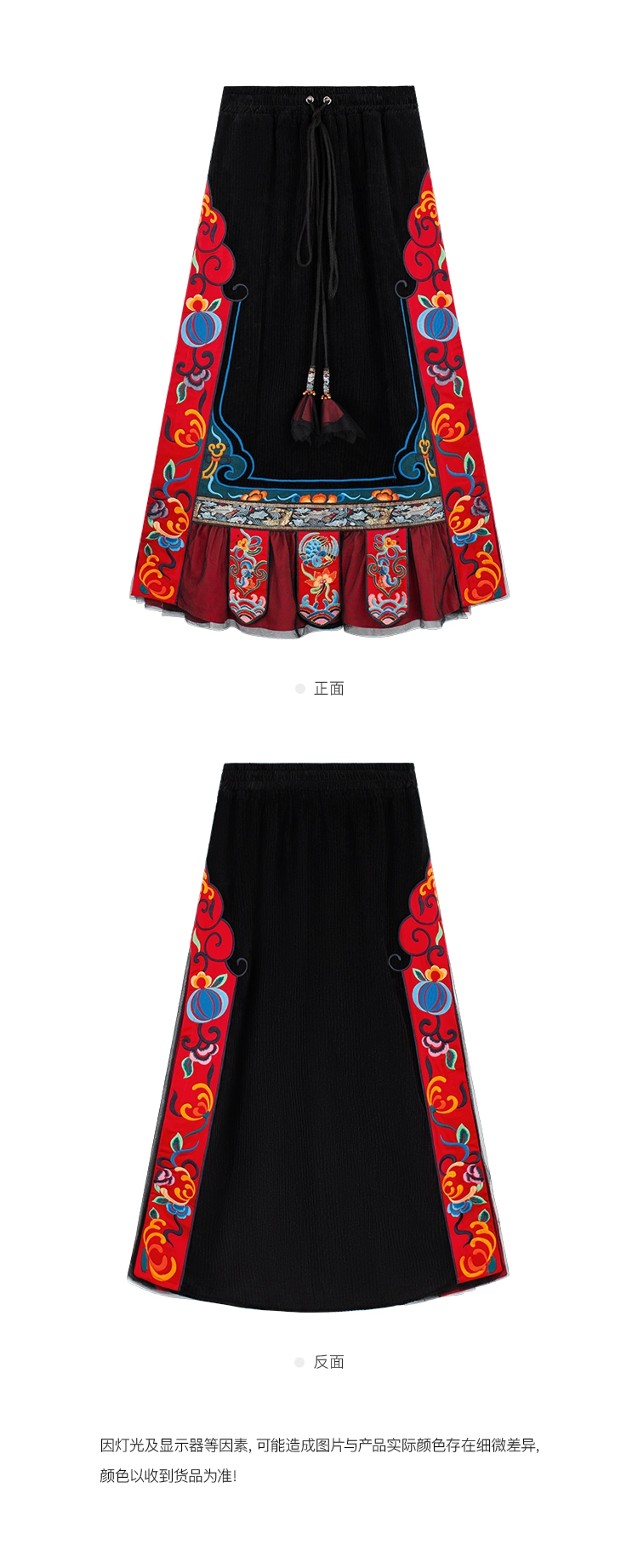 TIYIHAILEYбесплатная доставка; Сезон осень-зима; Плотная теплая длинная Вельветовая юбка макси с вышивкой и эластичной резинкой на талии в национальном китайском стиле