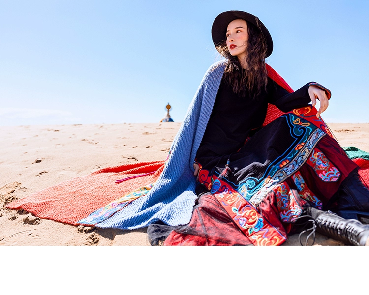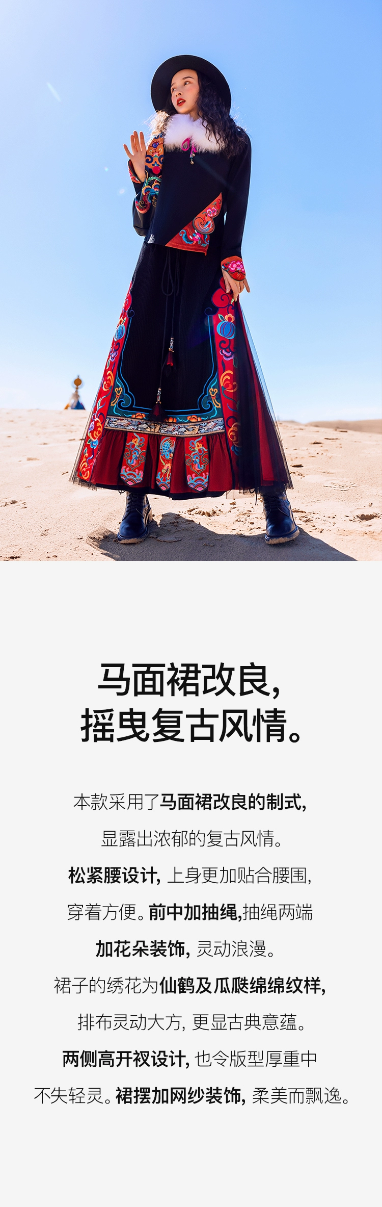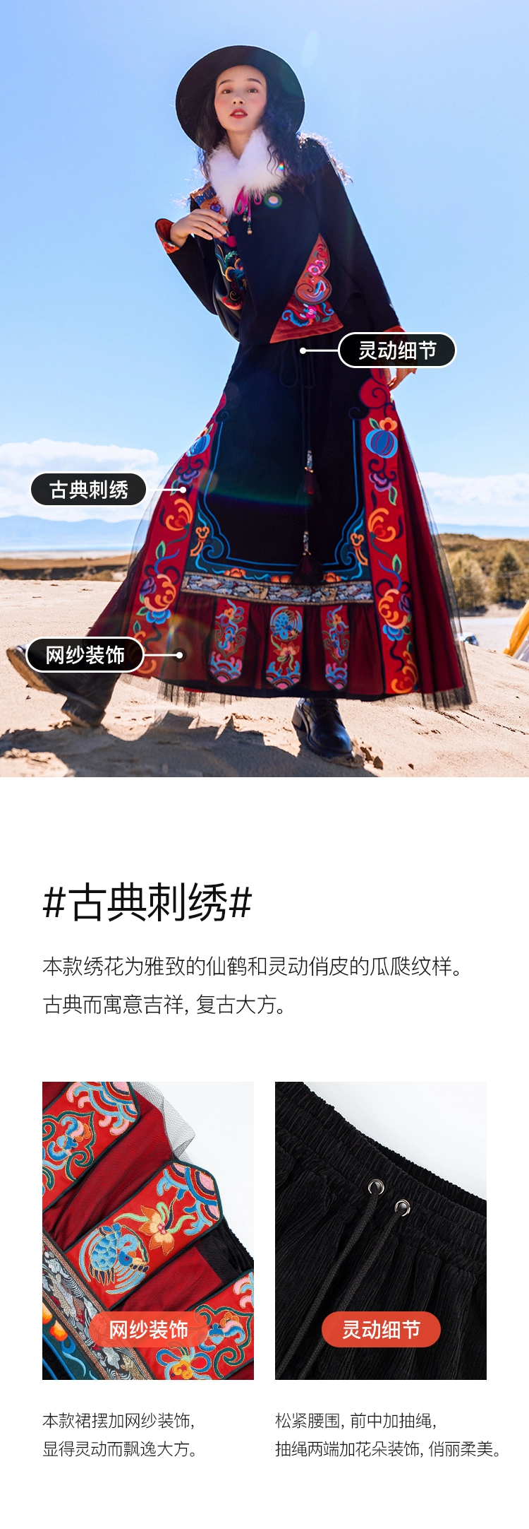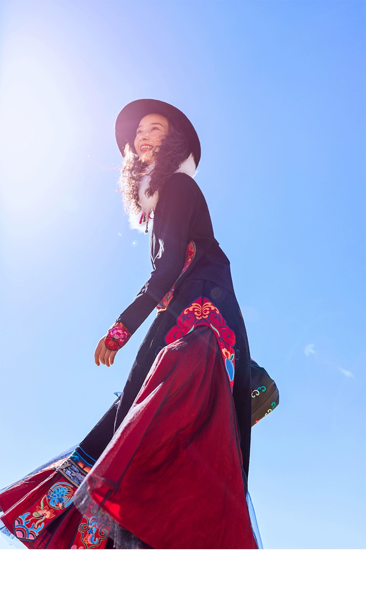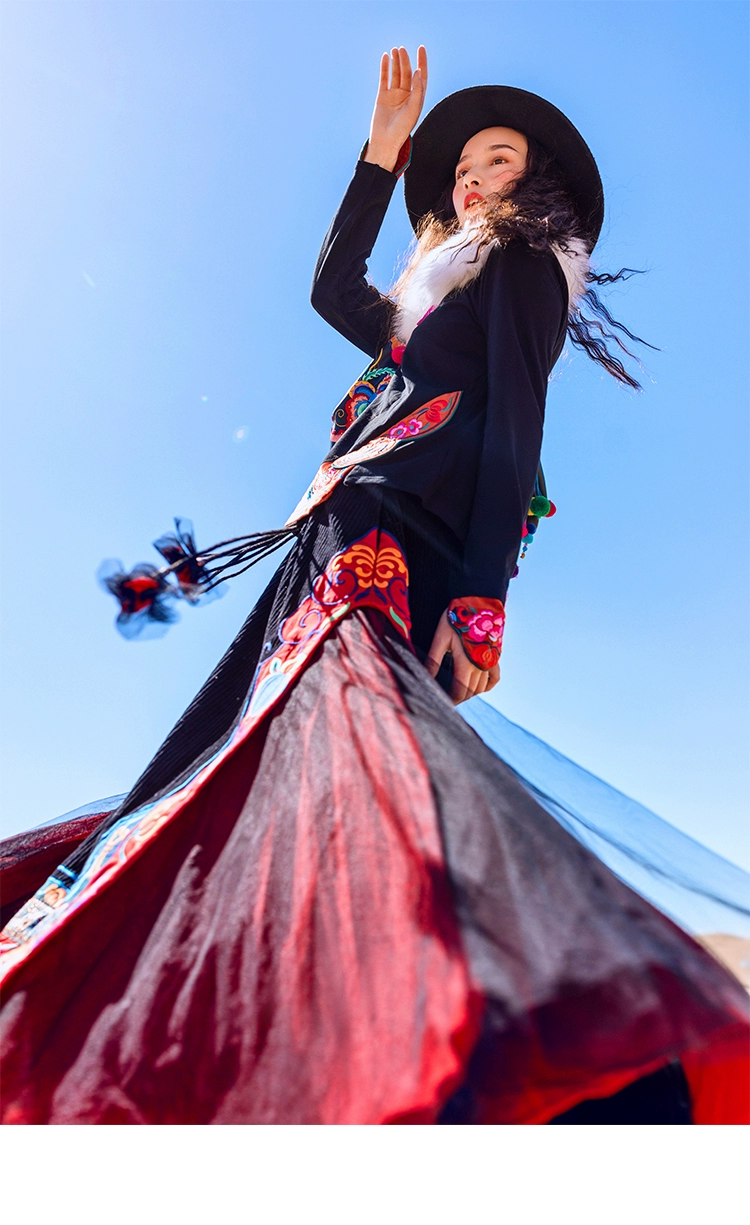 TIYIHAILEYбесплатная доставка; Сезон осень-зима; Плотная теплая длинная Вельветовая юбка макси с вышивкой и эластичной резинкой на талии в национальном китайском стиле