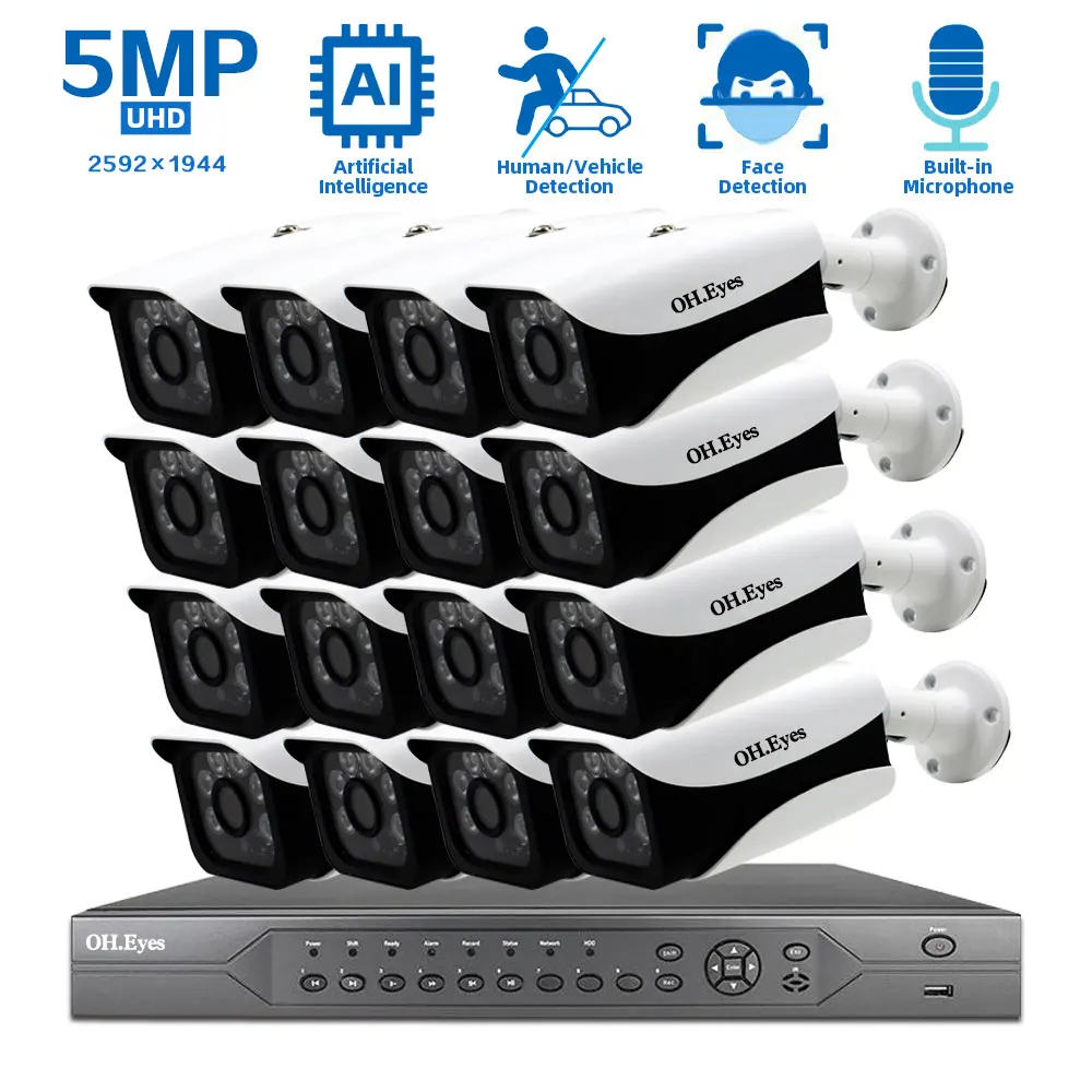 Система видеонаблюдения NVR, 5 Мп, 8 каналов, 4K Наружная Водонепроницаемая аудиокамера, 16 каналов, POE, 4K