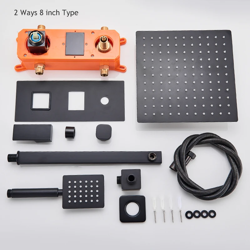 Набор скрытых смесителей для душа, матовый черный, с цифровым дисплеем