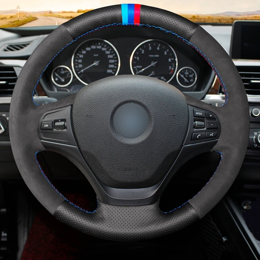 Сшитая вручную черная замша чехол рулевого колеса автомобиля для BM...