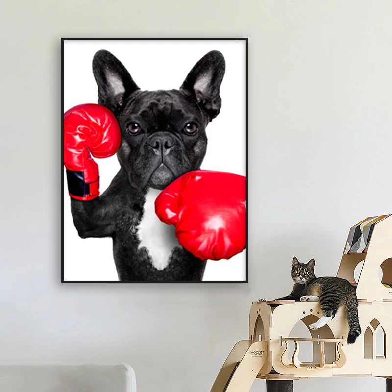 Плакаты и принты щенков, боксеры, бульдог с боксерскими перчатками, Картина на холсте с собакой, настенные картины для детской комнаты, скандинавский Декор для дома