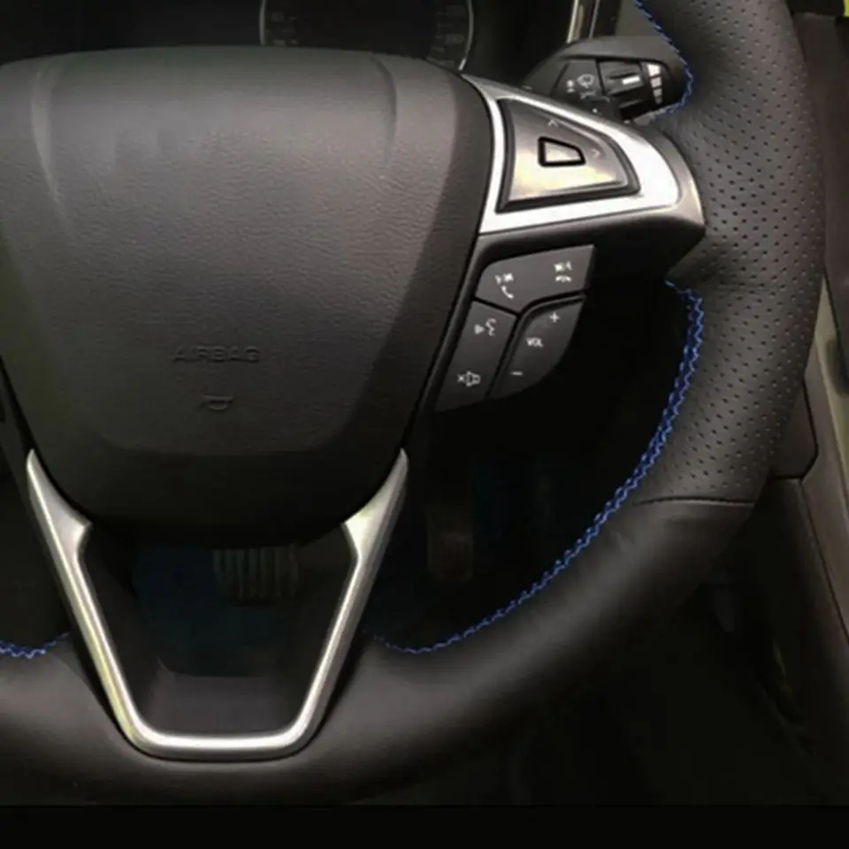 Чехол на руль автомобиля из мягкой черной натуральной кожи для Ford Mondeo Fusion EDGE 2013-2020 Galaxy 2016-2020 S-Max 2012-2020