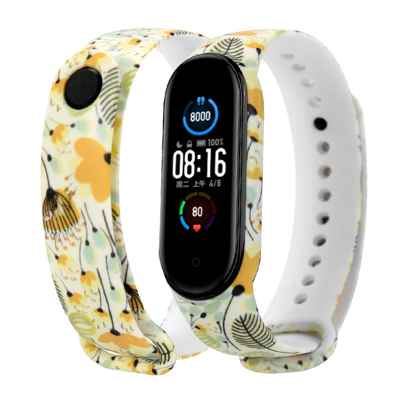 Сменный силиконовый ремешок с цветами для Xiaomi Mi Band 5 mi band 5