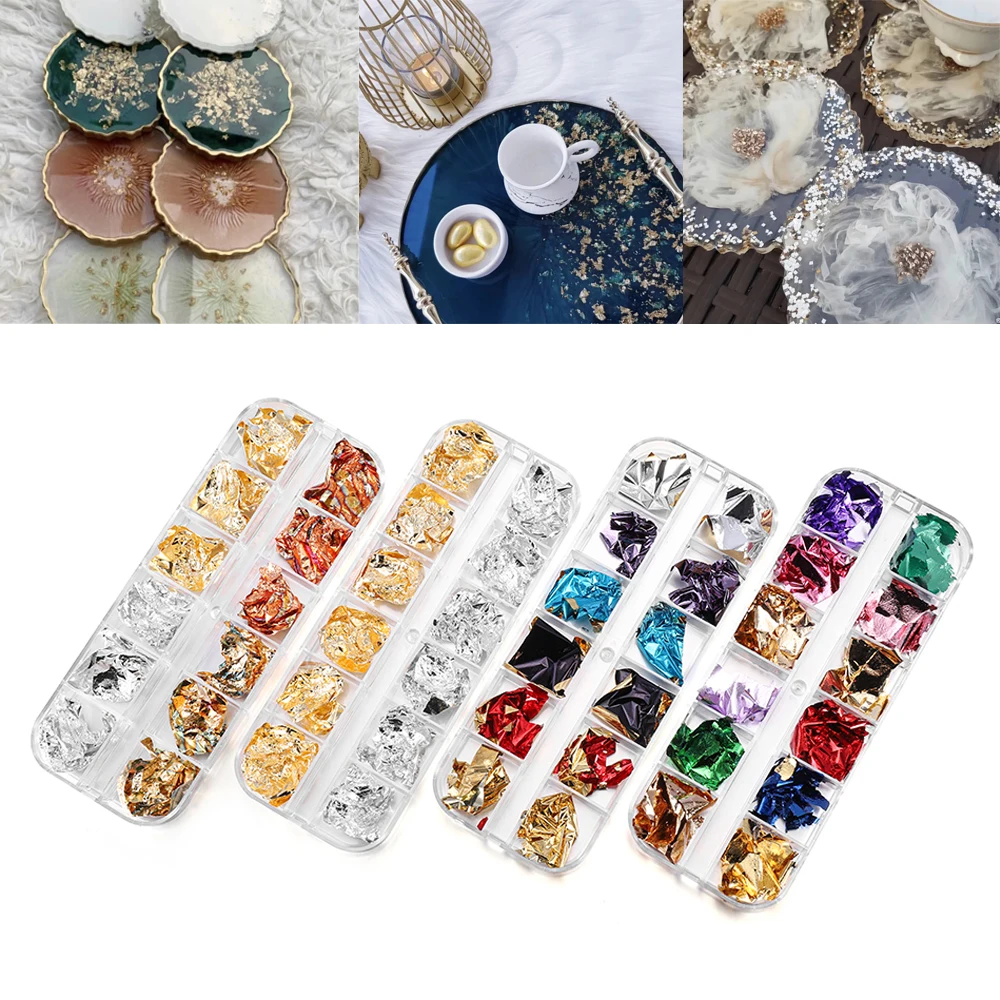 Декоративные хлопья золотых листьев для выпечки, 1 коробка, золотые и серебряные конфетти, для самостоятельного дизайна ногтей, бумажная фольга для украшения, товары Вечерние