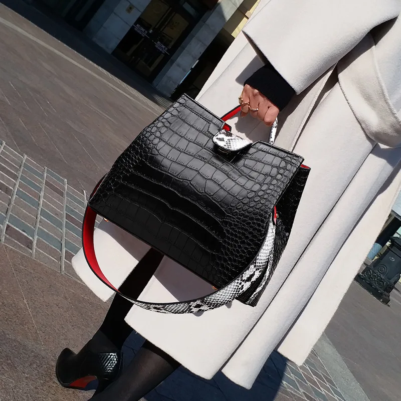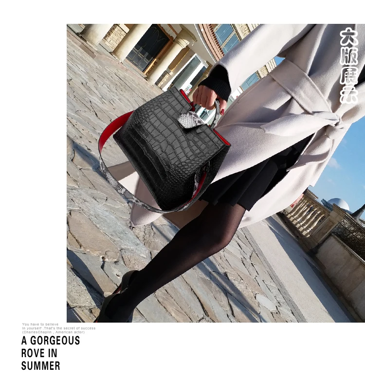 Женская кожаная сумка через плечо, с тиснением в виде боа, D175