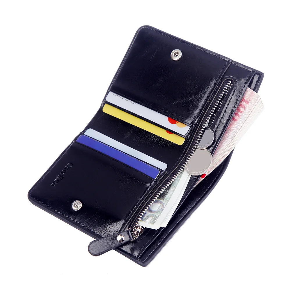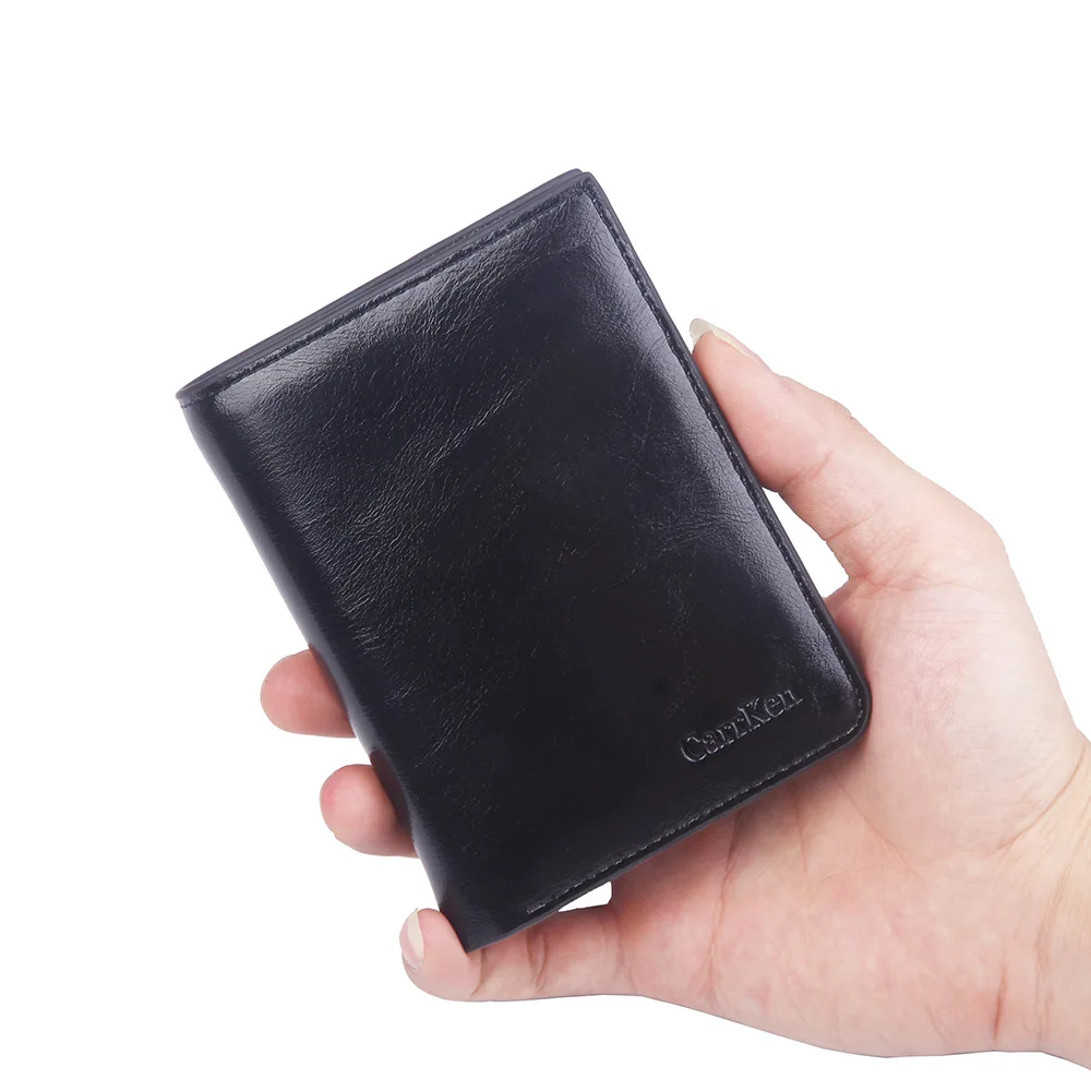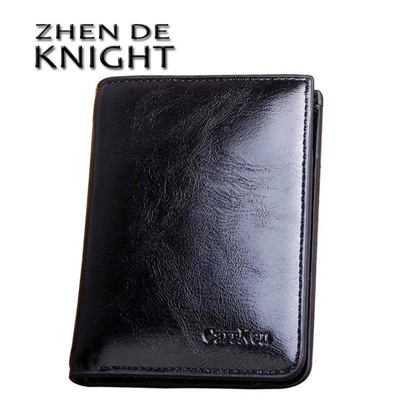 Новый мужской кошелек из масляной вощеной кожи, модный короткий двухскладной кошелек, повседневный однотонный мужской кошелек с карманом для монет, мужской кошелек на молнии