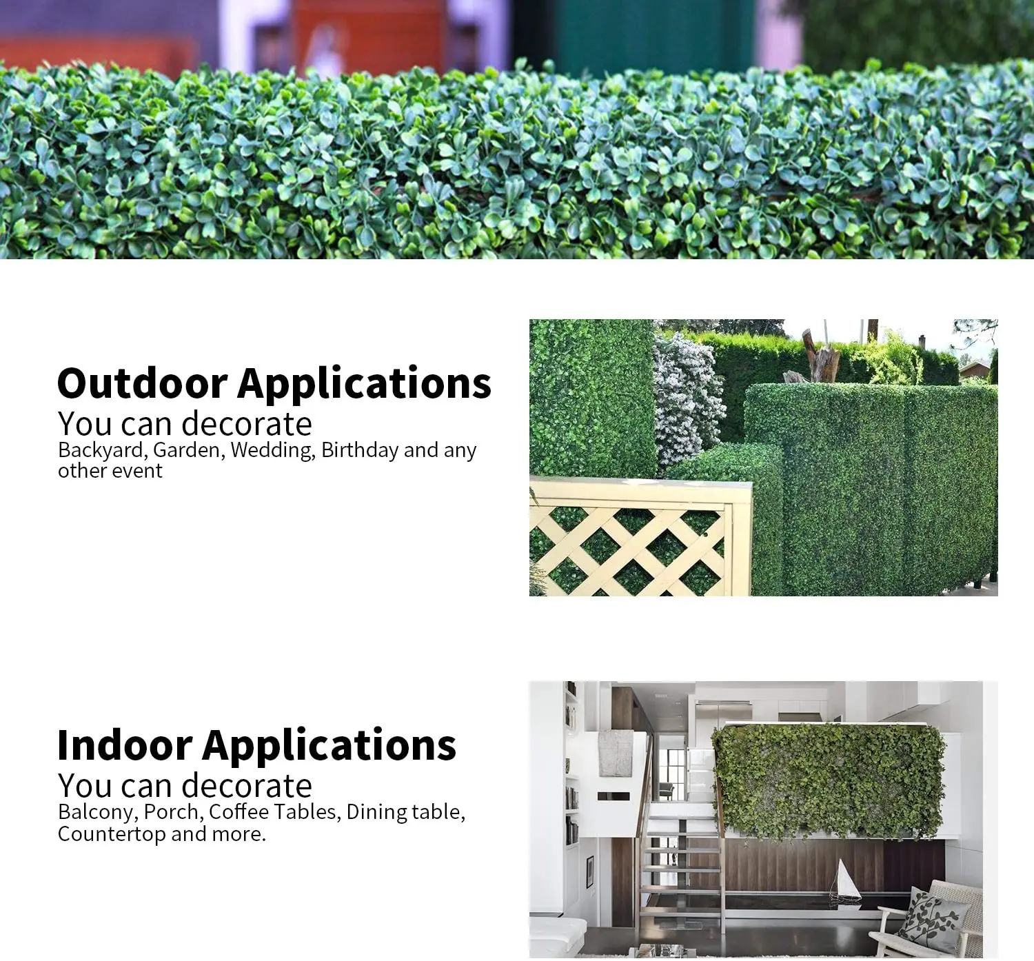 【 Мульти-использование 】: с этими искусственными изгородями вы можете попробовать различные DIY проекты и наслаждаться большим количеством зелени дома или на открытом воздухе. Наружные настенные украшения включают патио, сад, веранду, уличные экраны, деревянное ограждение, двор, задний двор, дорожки, фасады для дома и офиса, Фотофон, сценический фон, строительное поле и многое другое. Декор стен в помещении включает в себя балкон, гостиную, шпалеры, кабинет, терраса, ванную комнату, офисную рабочую зону, приемную, праздничные вечерние мероприятия и многое другое