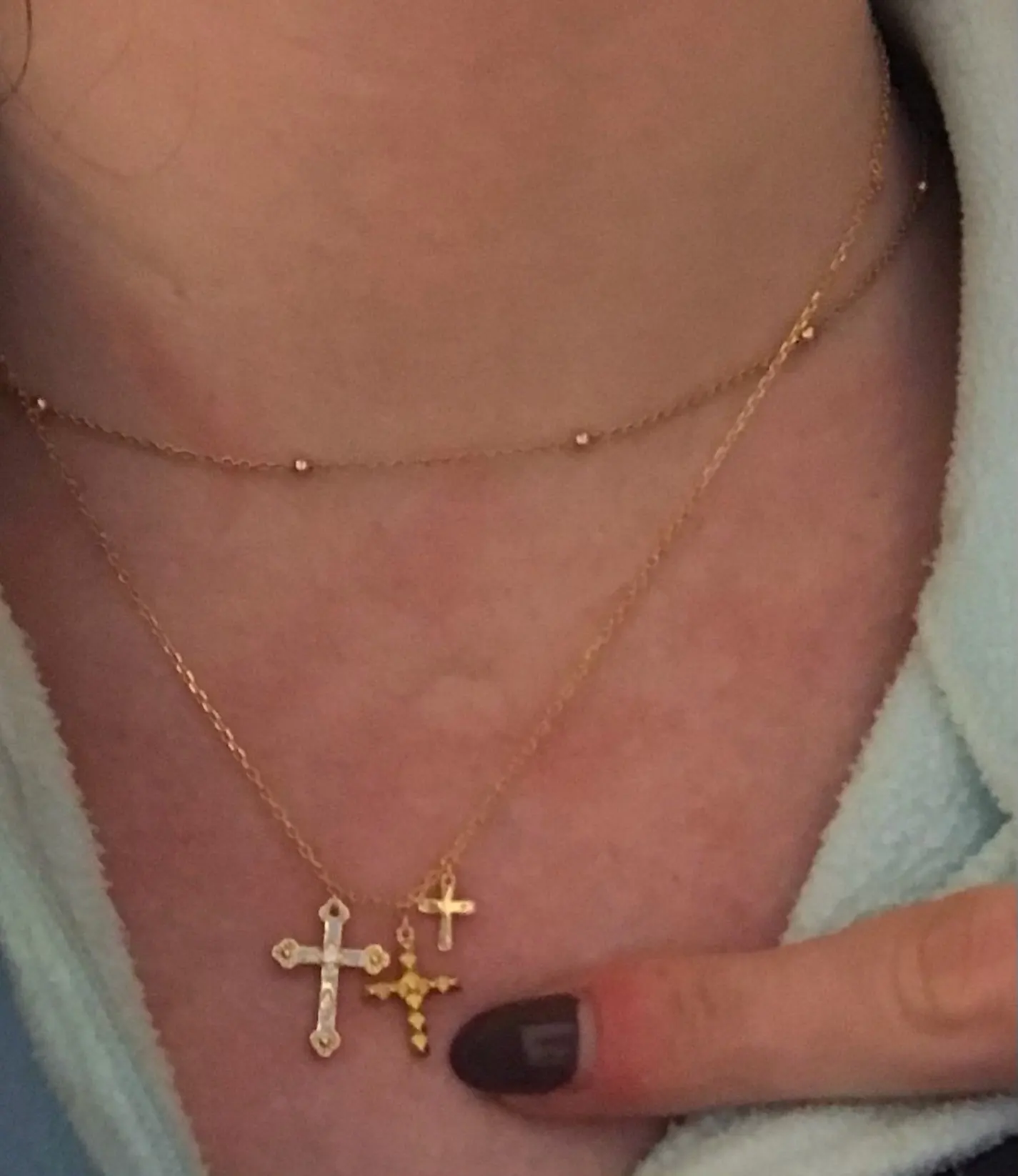 Extremely small. Nothing compared with the pictures. The cross looks like flies.