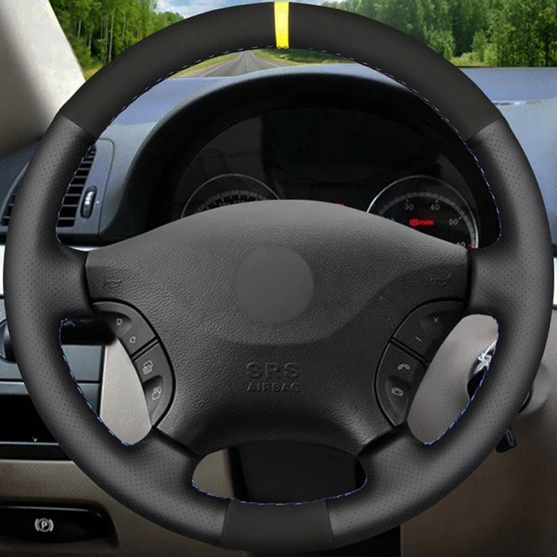 Черная кожа Алькантара Замша Чехол рулевого колеса автомобиля для B...