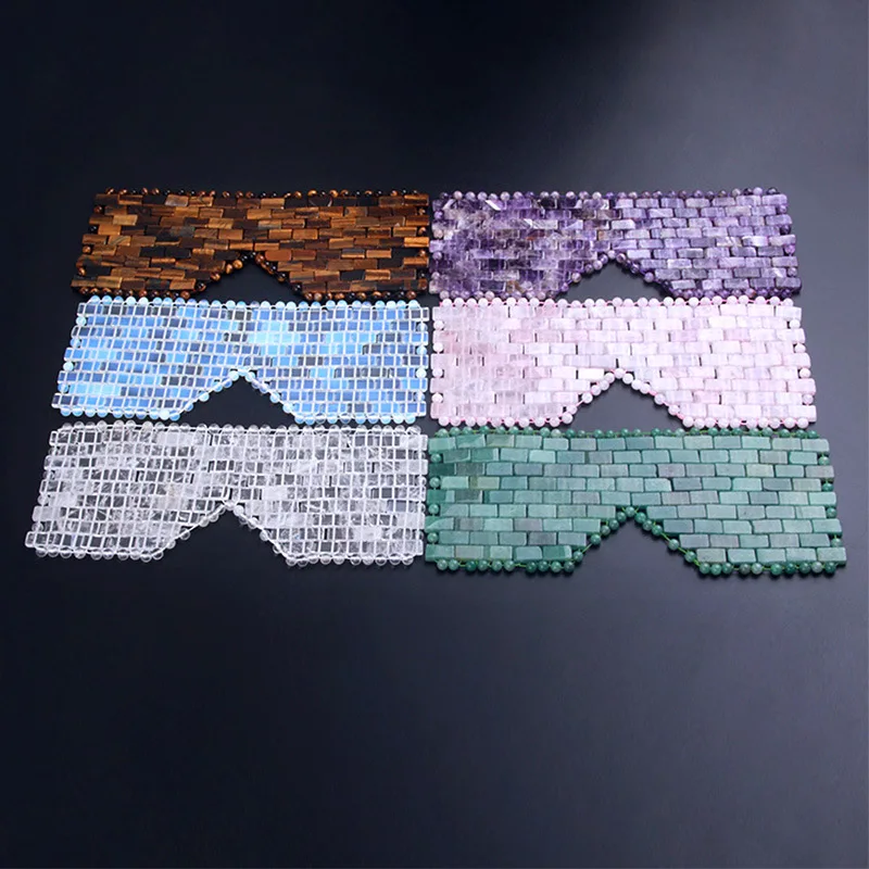 Розовая кристальная маска для глаз ручная работа занавес для глаз Хрустальная маска для сна Розовый кварц холодная терапия массажер для лица натуральная Нефритовая маска