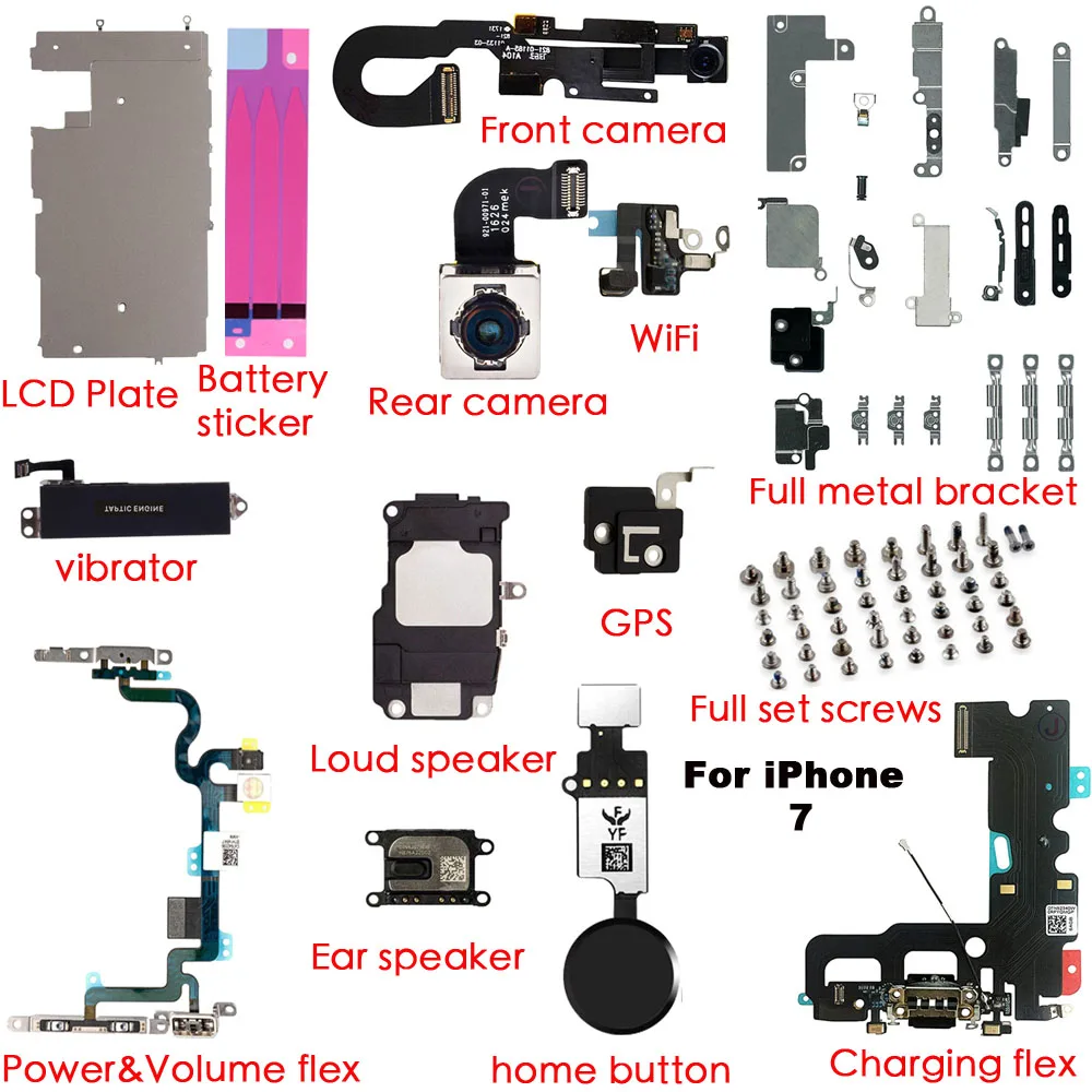 Комплект внутренних деталей для iPhone 7G 7Plus, кнопка домой, основная фронтальная камера, шлейф для зарядки и громкости, динамик