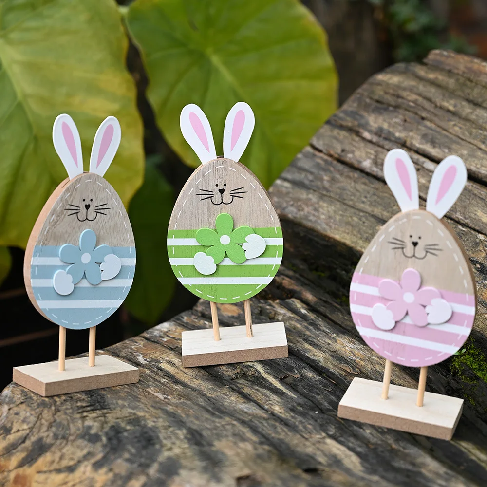 Милые деревянные пасхальные яйца зайчика, яйца, украшение, пасхальные украшения для дома, детская игрушка, подарок