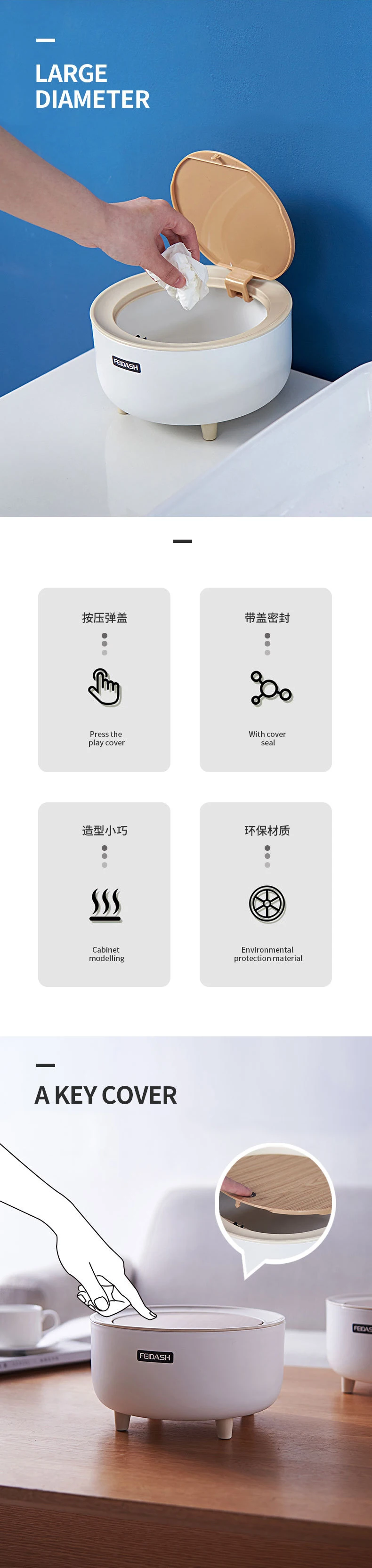 Креативное ведро для мусора круглый рабочий стол с крышкой, нажимно...