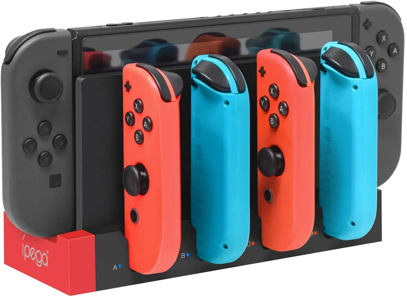 Дизайн для JOY CONS-специально разработан для Nintendo Switch и Joy Cons. Держатель зарядной станции для Nintendo Switch Joy Cons. Зарядное устройство имеет 4 отсека для загрузки ABCD, который поддерживает одновременную загрузку контроллеров 1-4 JoyCon.