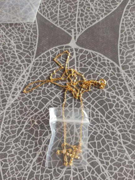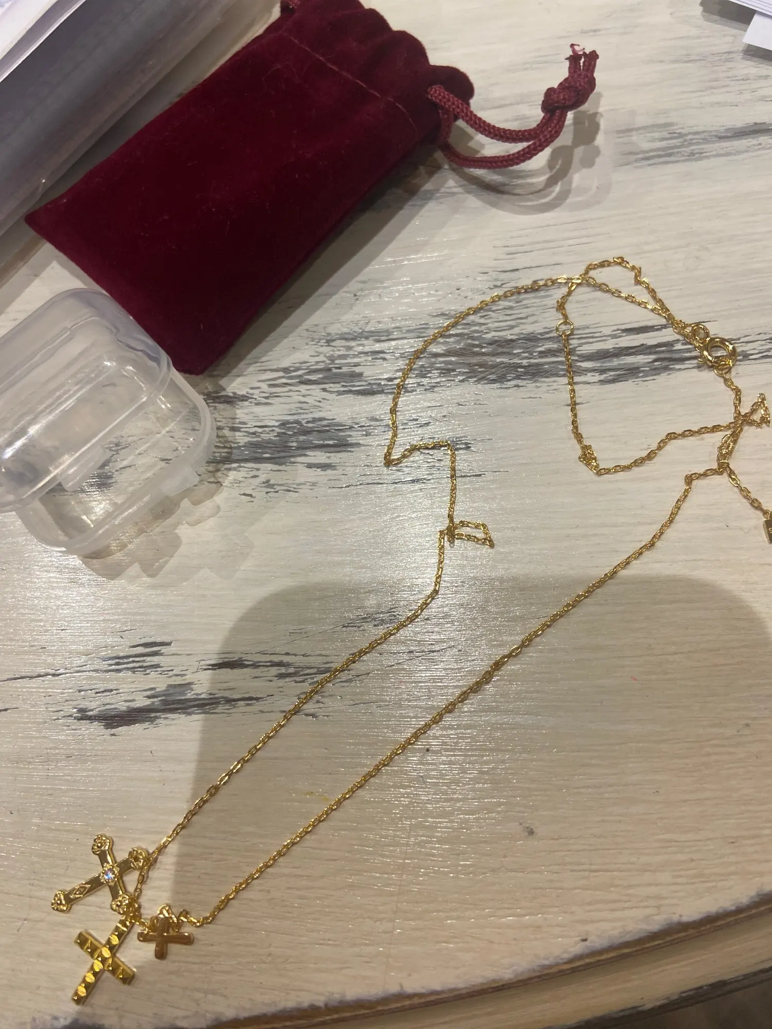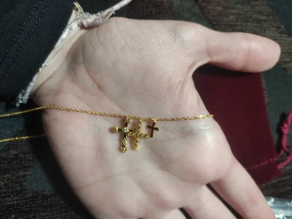 Это намного меньше, чем показано в объявлении, они крошечные и запутанные. Я ожидал большего от продукта, мне ничего не понравилось, по цене я ожидал чего-то лучшего качества (вы можете видеть очень слабые как кресты, так и цепь). Тем не менее, доставка была очень быстрой и упаковка была очень хорошей, она пришла в пластиковой коробке и с бархатной тканевой сумкой.