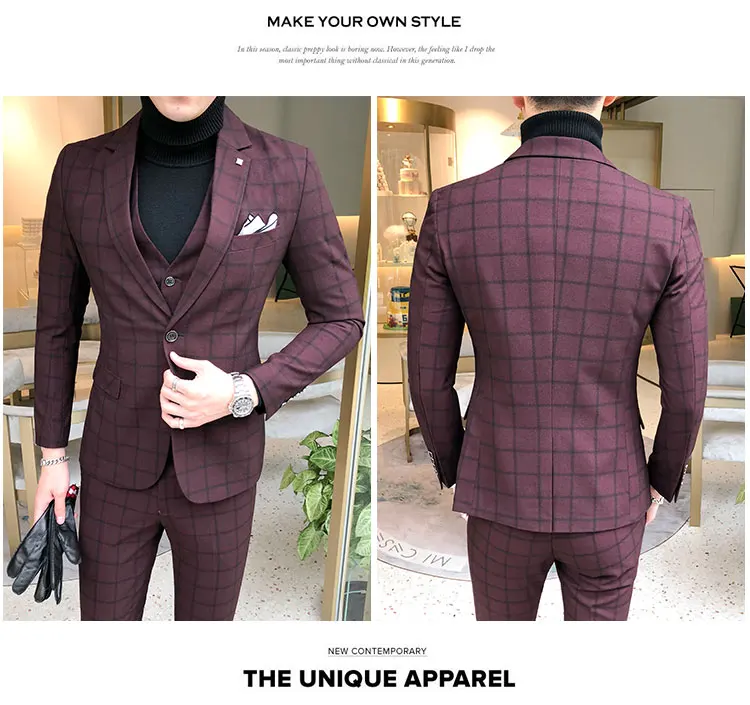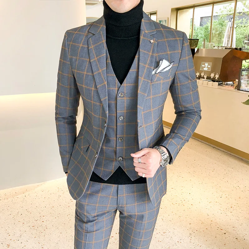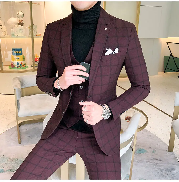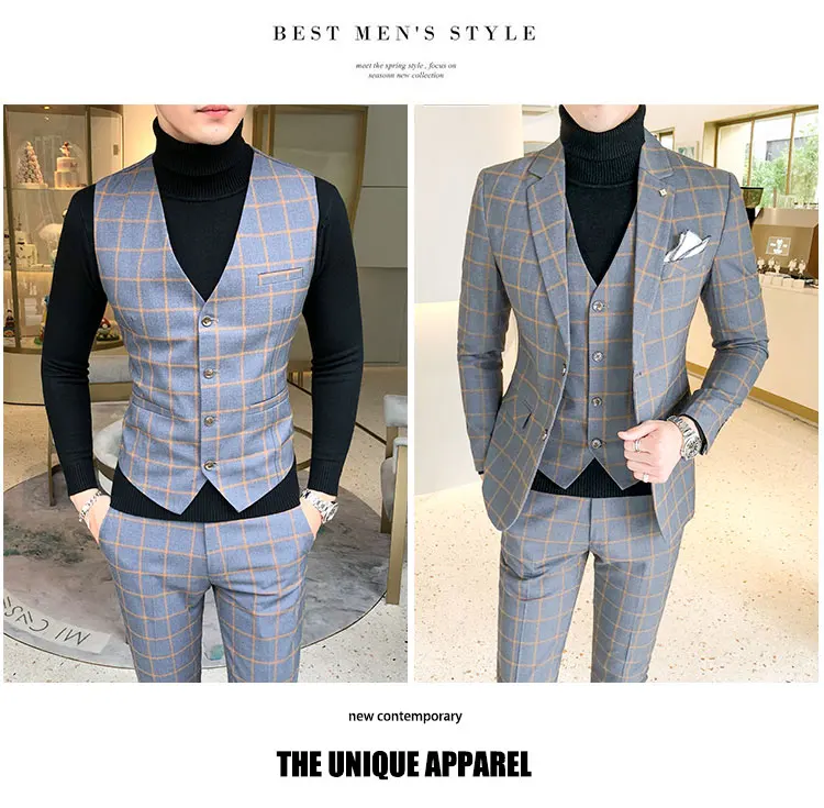 Блейзер и жилет и брюкиэксклюзивный модный клетчатый мужской повседневный деловой костюм 3 шт. в комплекте свадебное платье для жениха костюм для выступления