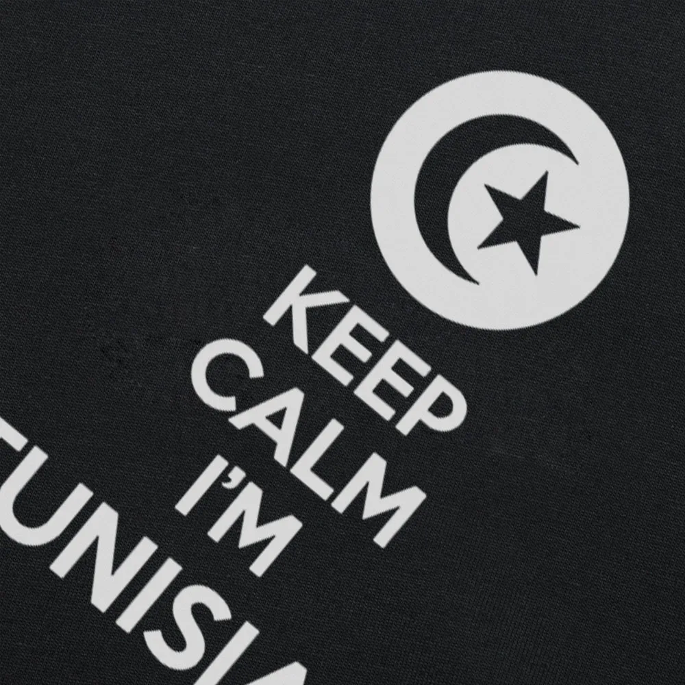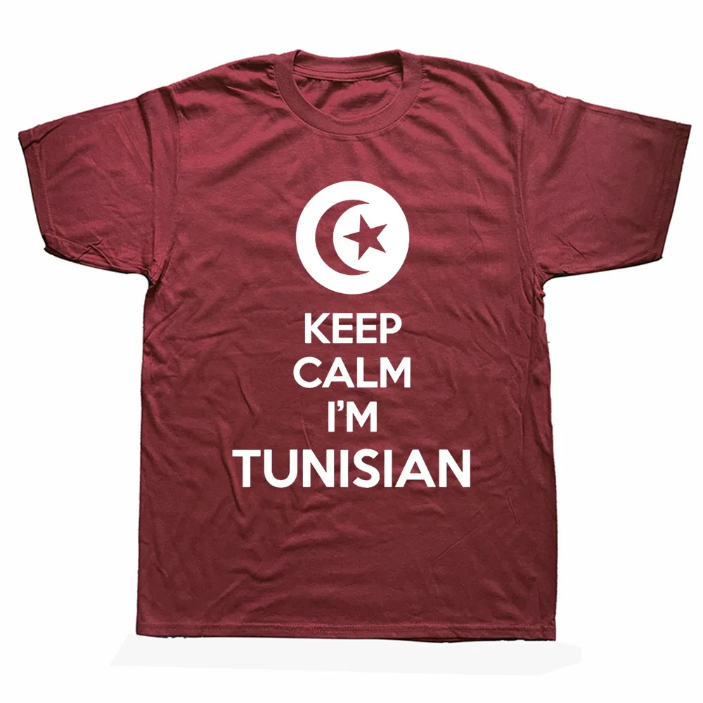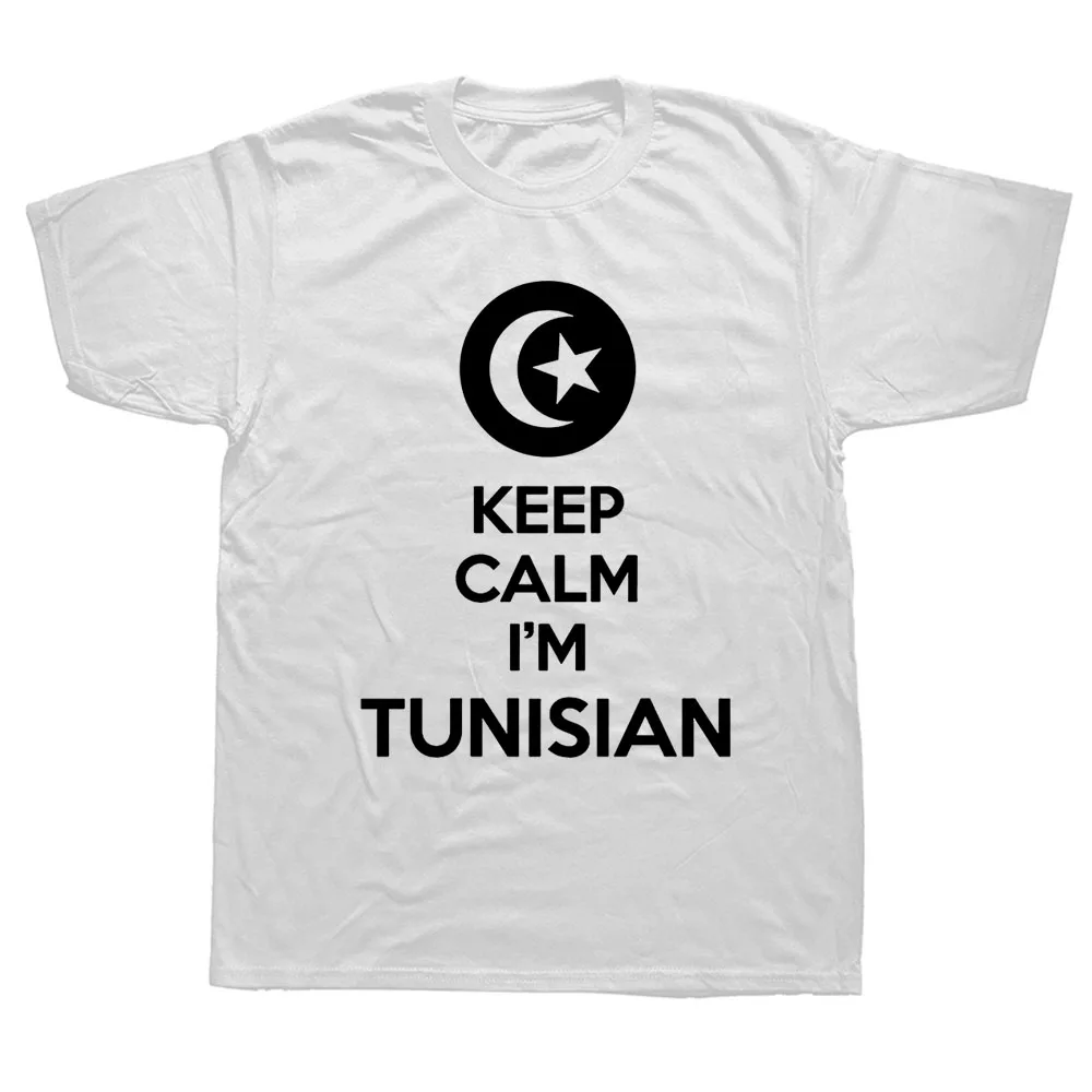 Футболка унисекс из хлопка с надписью KEEP CALM I AM тунисский флаг и круглым вырезом, модная, футболки с коротким рукавом
