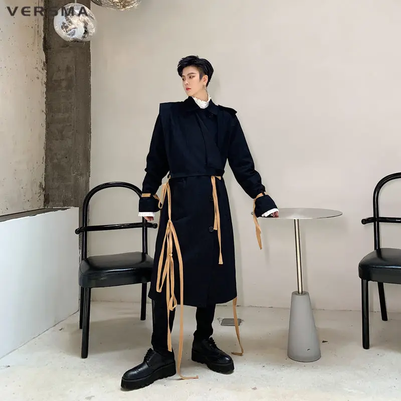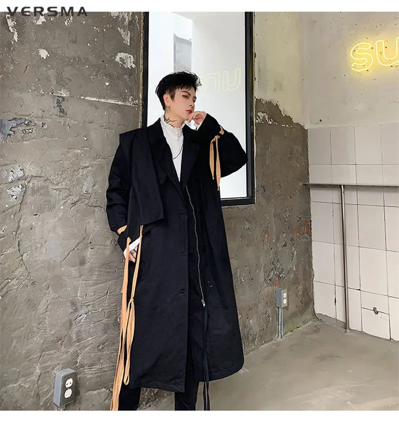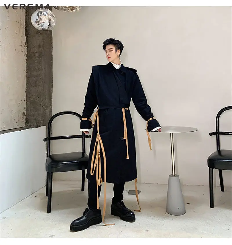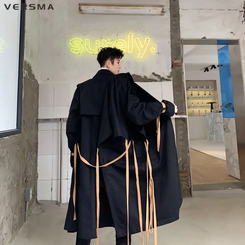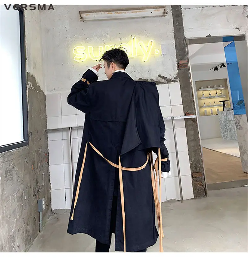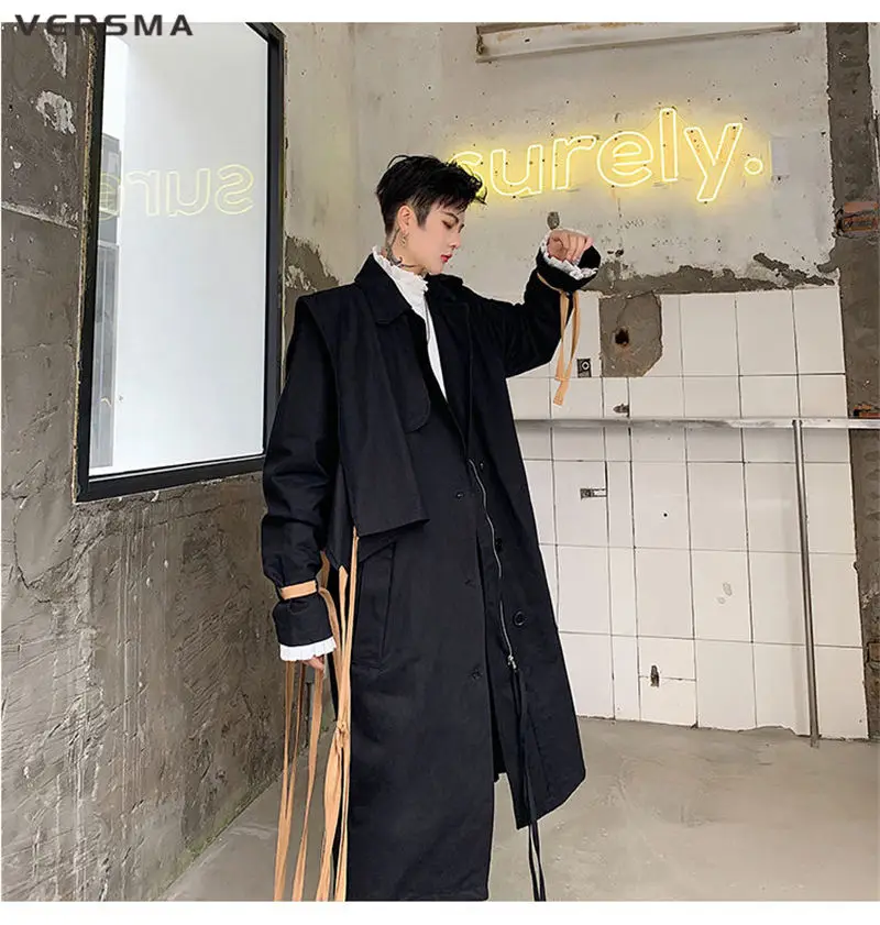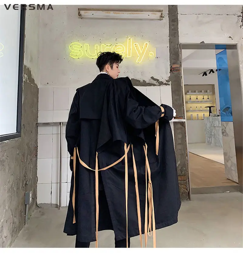Тренчкот мужской с лентами, в стиле Харадзюку, водостойкий, в готическом стиле